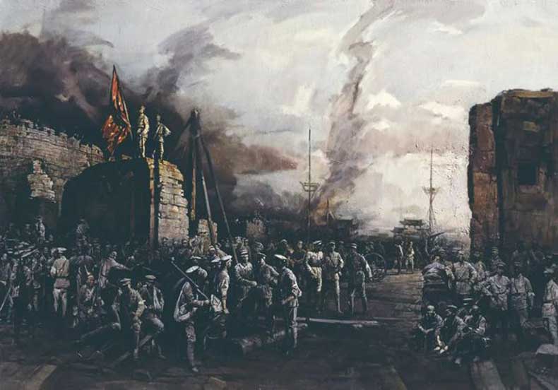 纪念辛亥***110周年大会于10月9日在北京***隆重举行,中共中央***、***、中央军委主席***在会上发表重要讲话。今年是辛亥***110周年,是***成立100周年,中国人民正意气风发向着全面建成社会主义现代化强国的第二个百年奋斗目标迈进。在这个重要时刻,我们缅怀孙中山先生等***先驱的历史功勋,就是要学习和弘扬他们为振兴中华而矢志不渝的崇高精神,激励和团结海内外全体中华儿女为实现中华民族伟大复兴而共同奋斗。下面列举部分描绘“辛亥***”的经典美术作品,带观众回溯那段赋有里程碑意义的***历史。