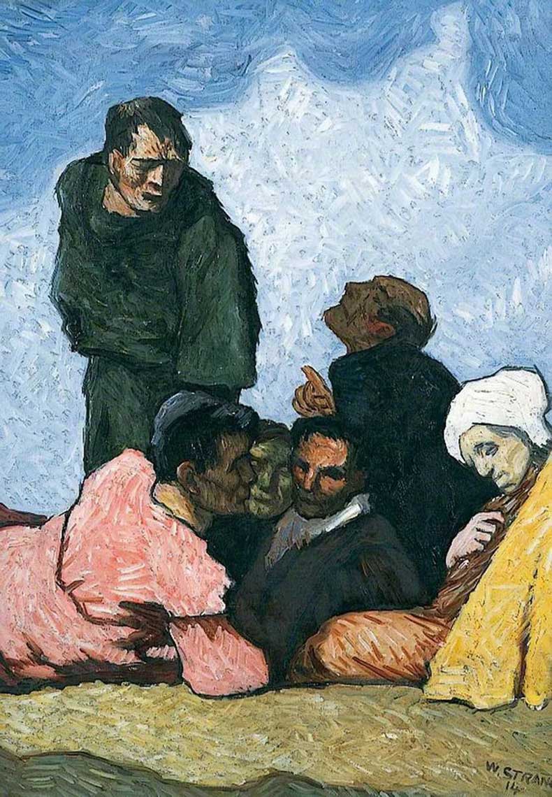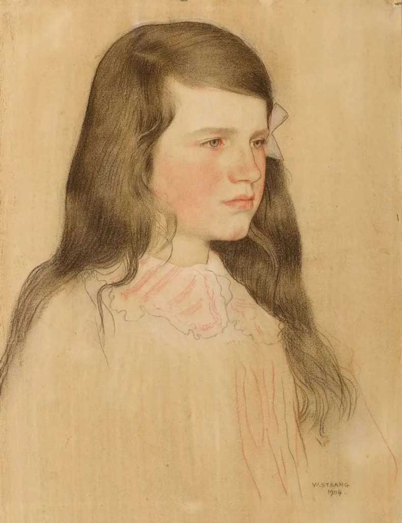 出生于苏格兰敦巴顿的威廉·斯特朗(1859-1921) 生前是一位技艺精湛且富有想象力的版画家、肖像画家,在国际上享有盛誉。他的题材多种多样,从奇幻到真实,包括对当代生活、贫困和社会不公正的影响、风景、圣经主题、令人眼花缭乱的寓言和叙事插图的毫不妥协的描绘。他还是一位多产且非常成功的肖像画家。
