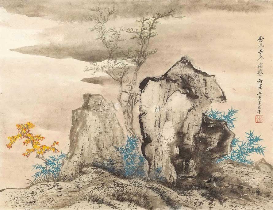 △竹石图