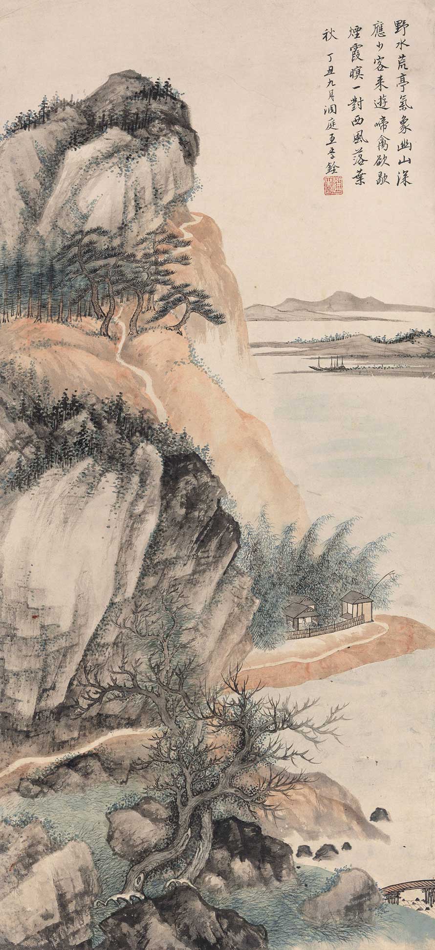 王己千是二十世纪最知名的中国书画收藏家,同时也是才华横溢的艺术家和艺评人。他先后在苏州画家顾麟士和吴湖帆门下习画。一九四〇年代移居美国,于纽约艺术学生联盟学习西方绘画。王氏精于古典绘画,但他的学识与画艺并没有成为前进的障碍,他成功突破藩篱,山水画有意识地融合了东西方艺术传统。王氏将风景的色调淡化,创造出抽象的印象,然而他笔下的人造元素,如房屋等,又将观众拉回到理智的现实世界。