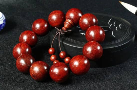 鉴别印度小叶紫檀手串可以掂重量,真印度小叶紫檀手串密度大,掂在手里分量沉重。假印度小叶紫檀手串密度小,掂在手里会有一种轻飘飘的感觉。