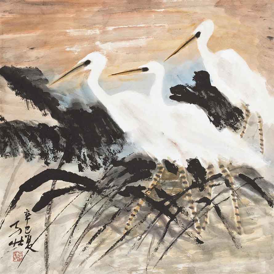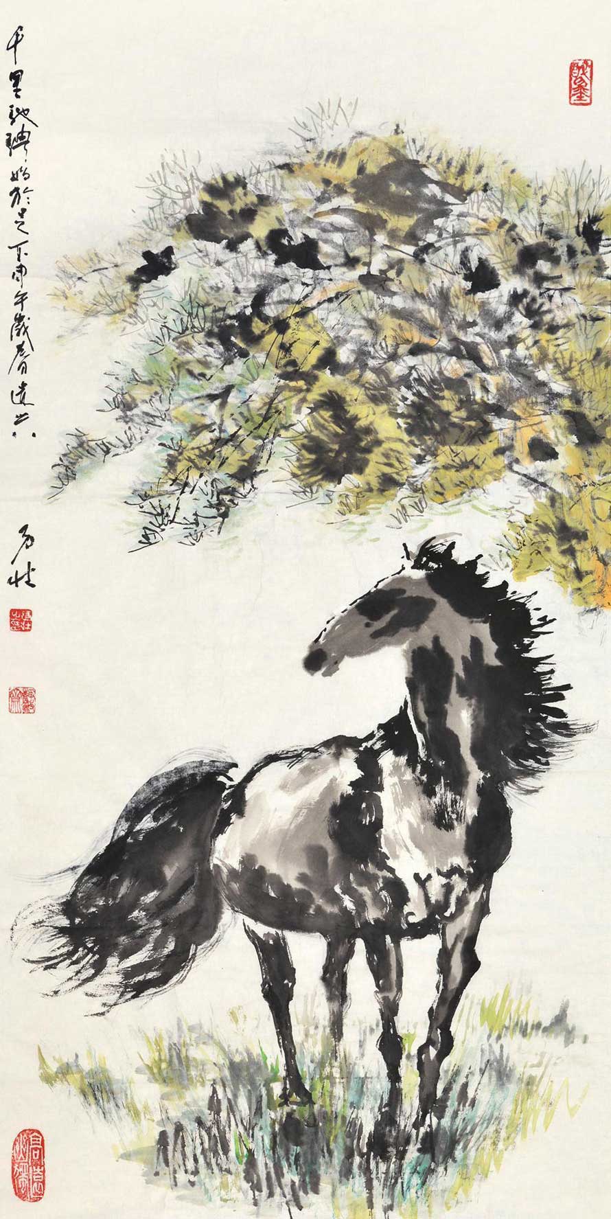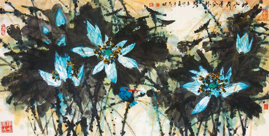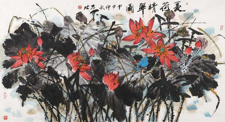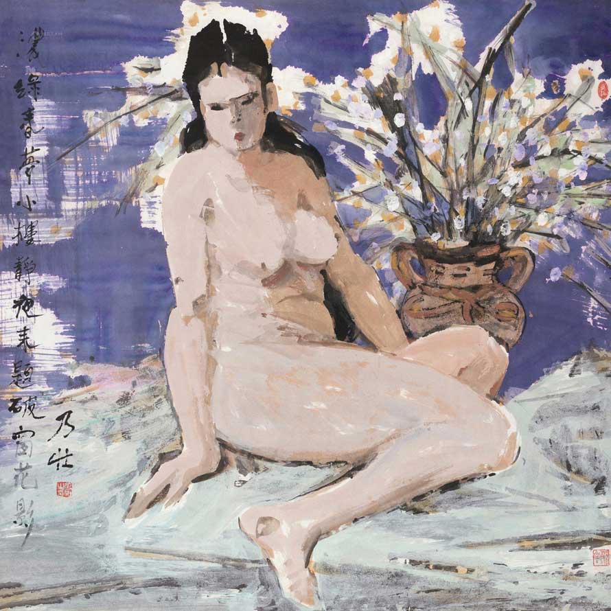 王乃壮(b.1929),又名王洲,号静敛斋主、寒山稚子。浙江杭州人,西泠印社创始人之一王福厂之孙。幼承家传,酷爱书画。1947年入上海美术专科学校学西画,1949年考入中央美术学院,得悲鸿、吴作人指导。1953年毕业于中央美术学院。后任清华大学美术学院教师、教授。60年代初又从李苦禅学习水墨大写意与书法,作品追求新意,具有粗犷浑厚、精致典雅、深沉耐看的风格。