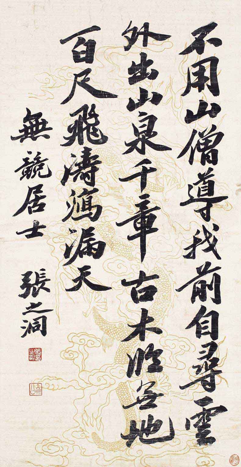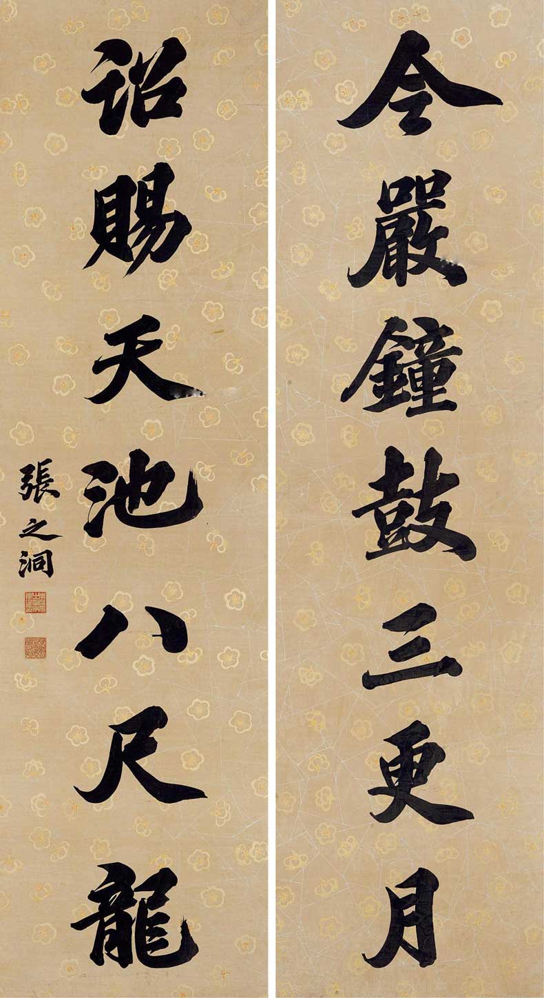 张之洞(1837~1909),字香涛、孝达,号香岩、壶公,河北南皮人。同治二年进士,探花。光绪末年官至军机大臣、体仁阁大学士。为清末洋务派首脑之一。众所周知,列坐晚清中兴四大名臣的张之洞,除却卓绝一世的谋略学识和政行功绩,最引以为傲的便是书法成就。其书法师“宋四家”之苏东坡、米元章,兼融铭文碑刻,笔力遒劲,气势磅礴,深负盛名。目前其书法拍卖纪录为102万。