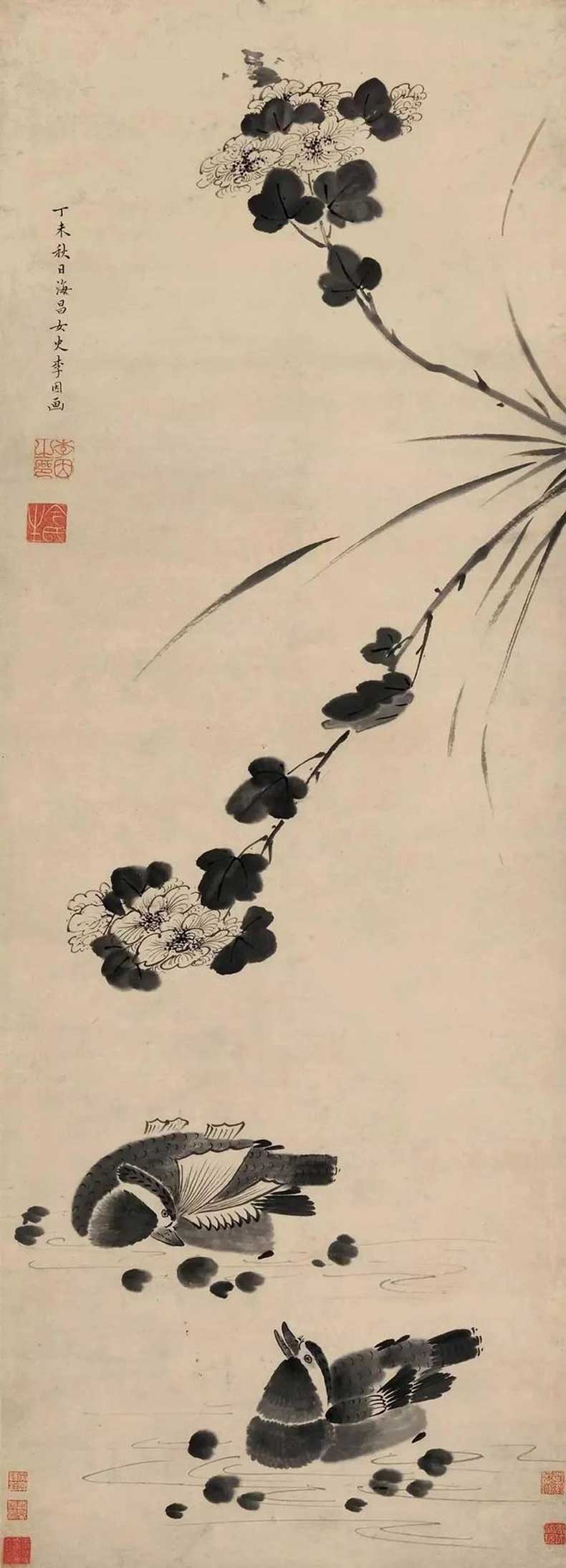 李因喜爱画水墨写意,善山水、花鸟,尤擅松鹰芦雁。在绘画上崇尚隽雅,多用水墨,苍老无闺阁气。不仅得陈淳之精髓,还注重师法造化,追求王维“诗中有画,画中有诗”的境界。时人评价其“匹鸟芙蕖,一幅迷烟雨”。她笔下的鸟形神兼备,高淡生动,栩栩如生。她笔下的花,潇洒随意,幽淡欲绝,抛开富贵荣华,追求的是疏爽隽逸、甘于平淡超俗的品格,别有一番情愫!