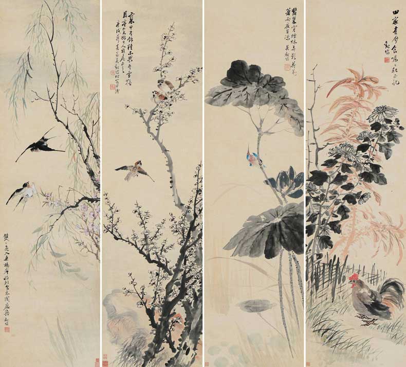 △吴观岱 花鸟四屏