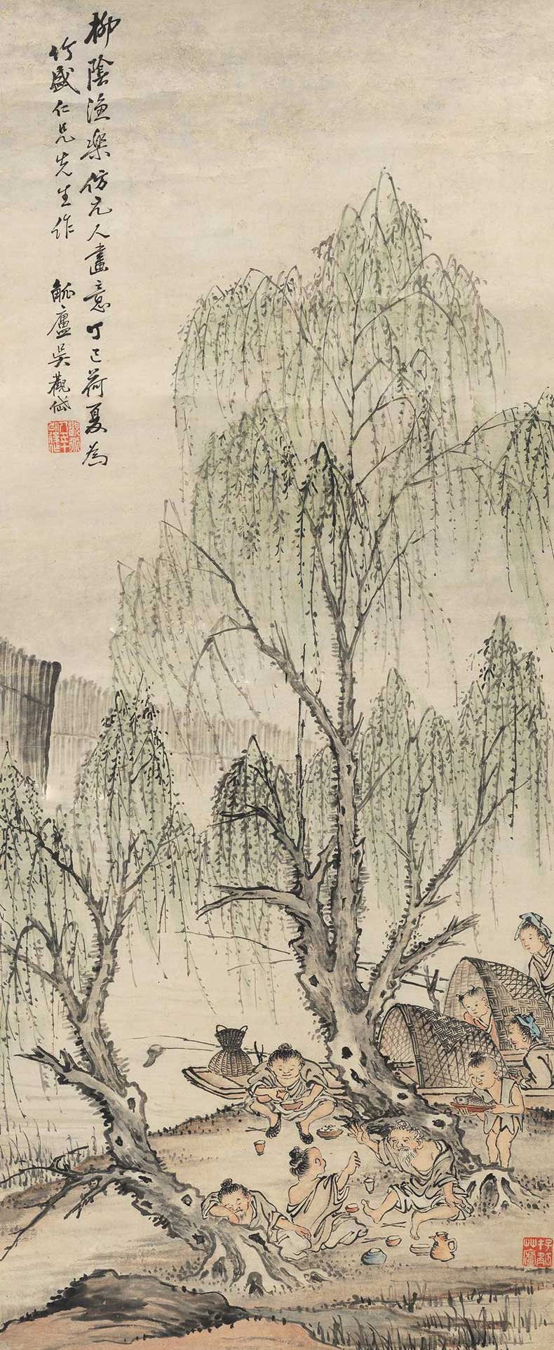 △1917年作 柳荫渔乐图