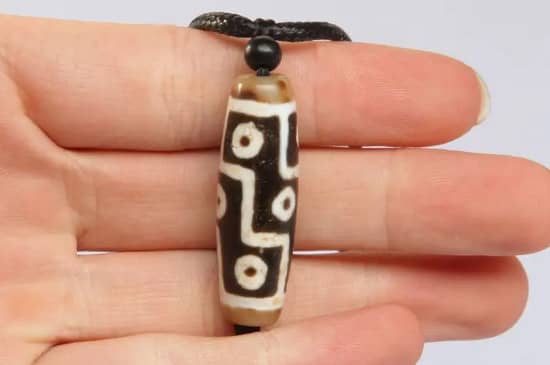 九眼天珠是沉积岩材质的才是真的天珠。九眼天珠因表面有九个像眼睛一样的花纹而得名,一般为玉或玛瑙等沉积岩材质打磨成柱状。产地在西藏等地,天珠在藏族中具有很高的地位。