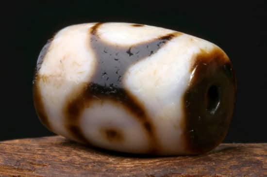 老天珠最明显的特征就是老天珠的朱砂点,这是天然矿物中所含之铁质。经过长时间的使用与接触大气中所含物质经由矿体本身所含之铁元素物质氧化形成氧化铁,再经由矿物本体的毛细孔由内部往外延伸出来的。