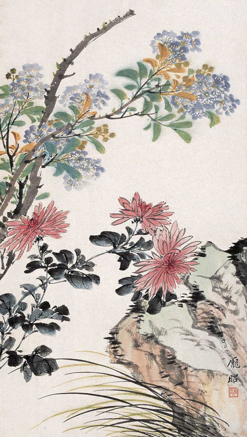 庞左玉(1915~1969),又名庆昭,别署瑶草庐主,女。浙江吴兴人。农工民主党党员、中国美术家协会及上海分会会员、上海中国院画师。解放前曾参加过中国女子书画会、中国画会。解放后曾加入新中国画研究会。擅画花卉、草虫,风神秀雅,笔致工整,吸取恽寿平、华嵒的设色与写生技法。