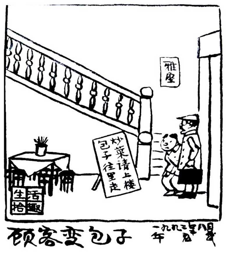 《顾客变包子》——炒菜请上楼,包子往里走。