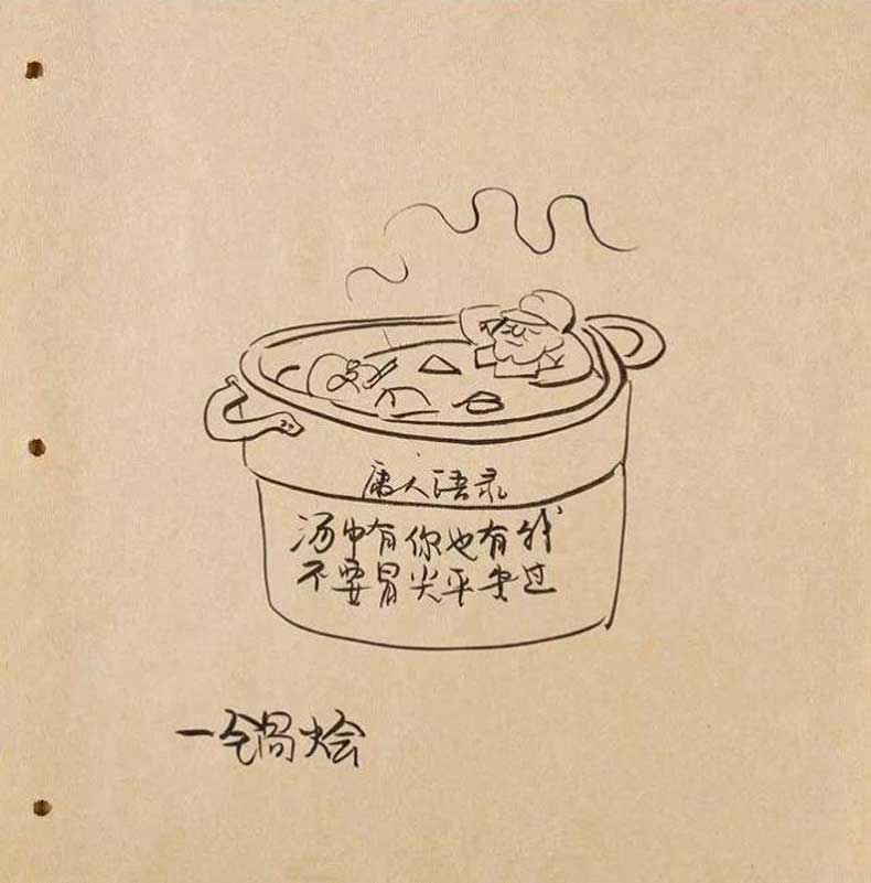 老一辈的文艺工作者是非常的注重文字的运用的。这幅漫画当中的餐馆的标语,就是有语病的句子,因此会使人产生误解。这也是社会中很常见的一种文化现象。