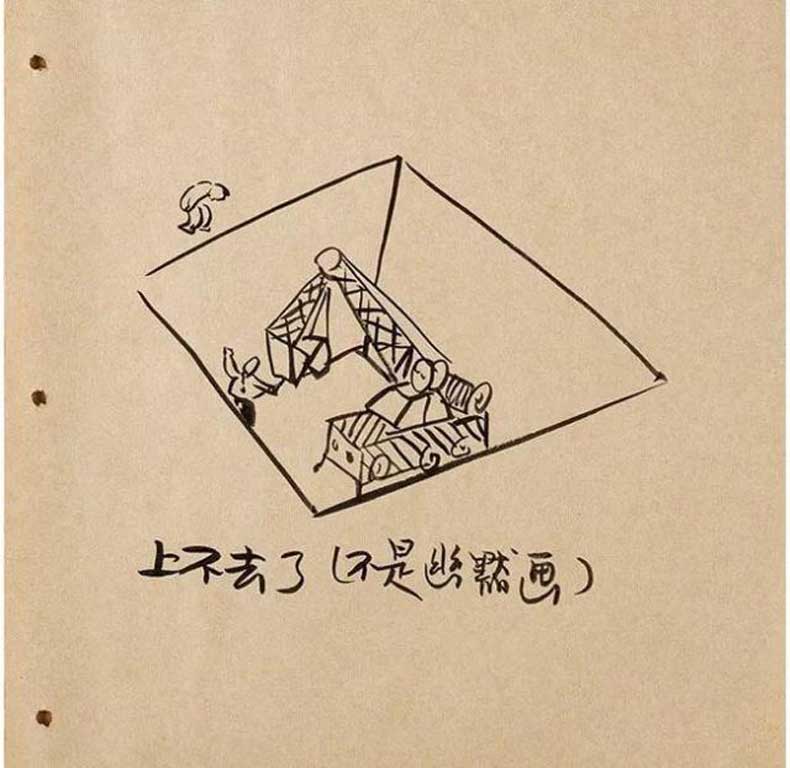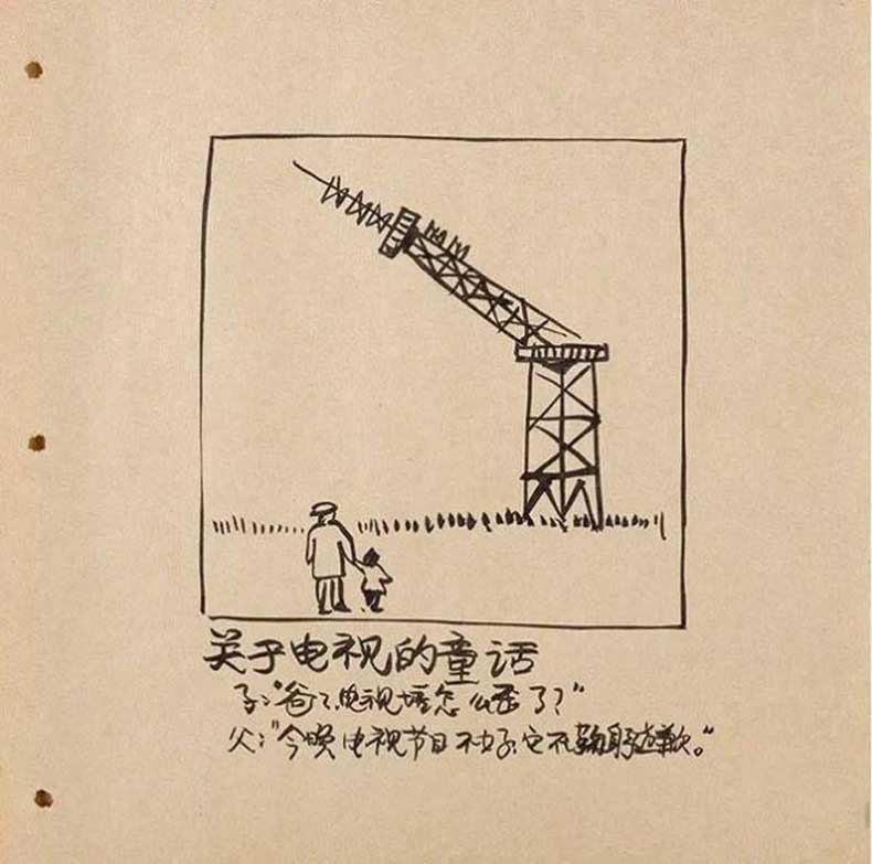 这幅漫画创作于一九九二年,当时也是中国正在发展的时期,很多城市开始进行棚户区改造,高楼大厦拔地而起,或许人们会从欣赏自然风光,转换成为睁眼就见城市化的现象,这种转换是否是件令人愉悦的事情?我们从漫画里可以得到答案。