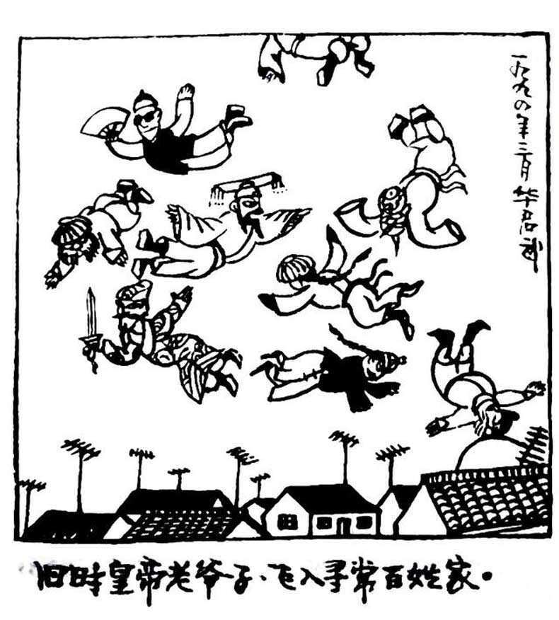 《旧时皇帝老爷子,飞入寻常百姓家。》这里引用了唐代诗人刘禹锡的一首名作——《乌衣巷》,原诗为“朱雀桥边野草花,乌衣巷口夕阳斜。旧时王谢堂前燕,飞入寻常百姓家。”而在这幅漫画中,又表达了什么新的意思呢?