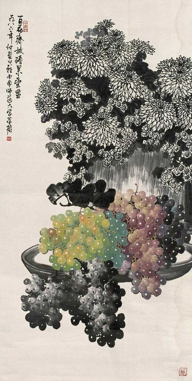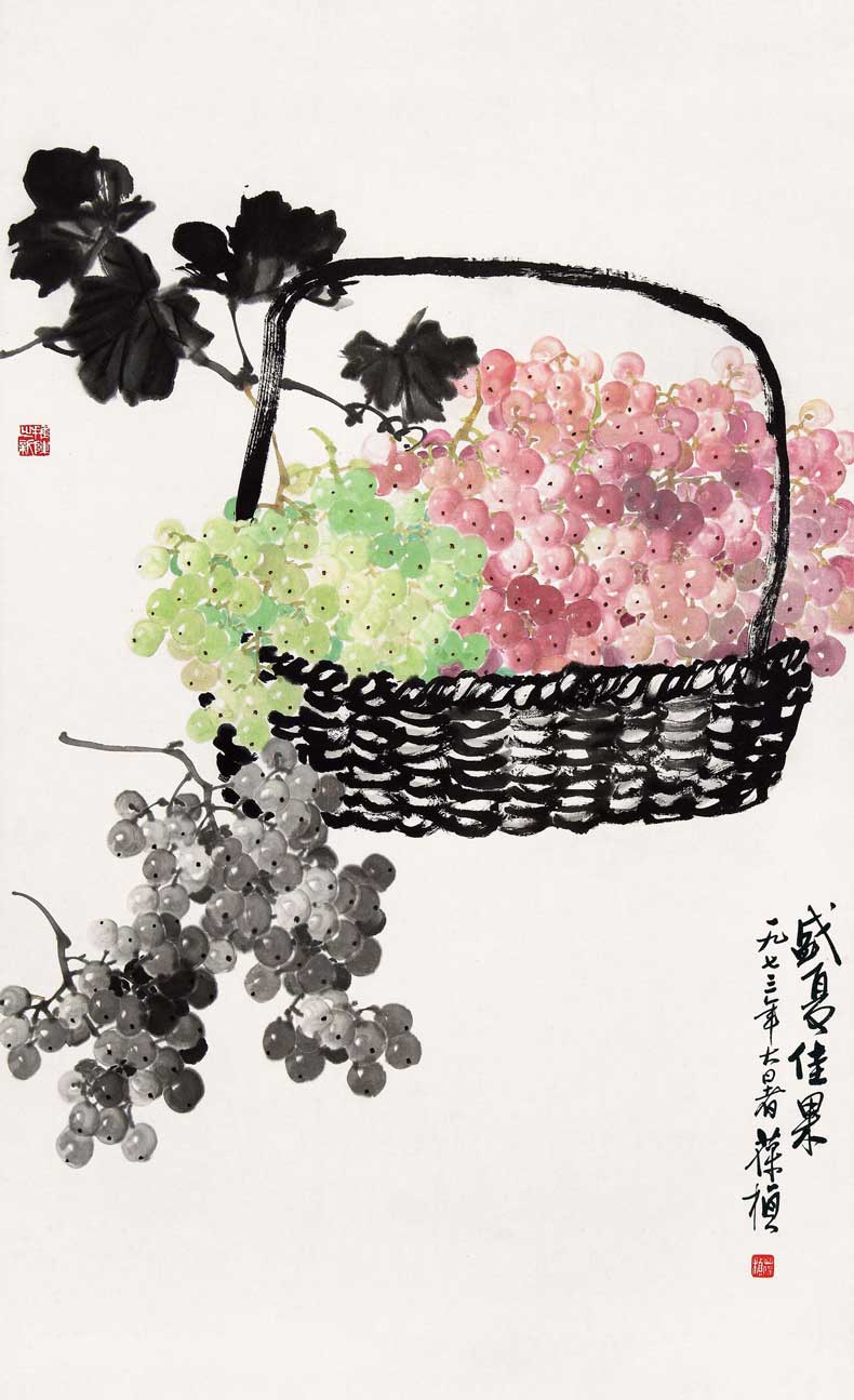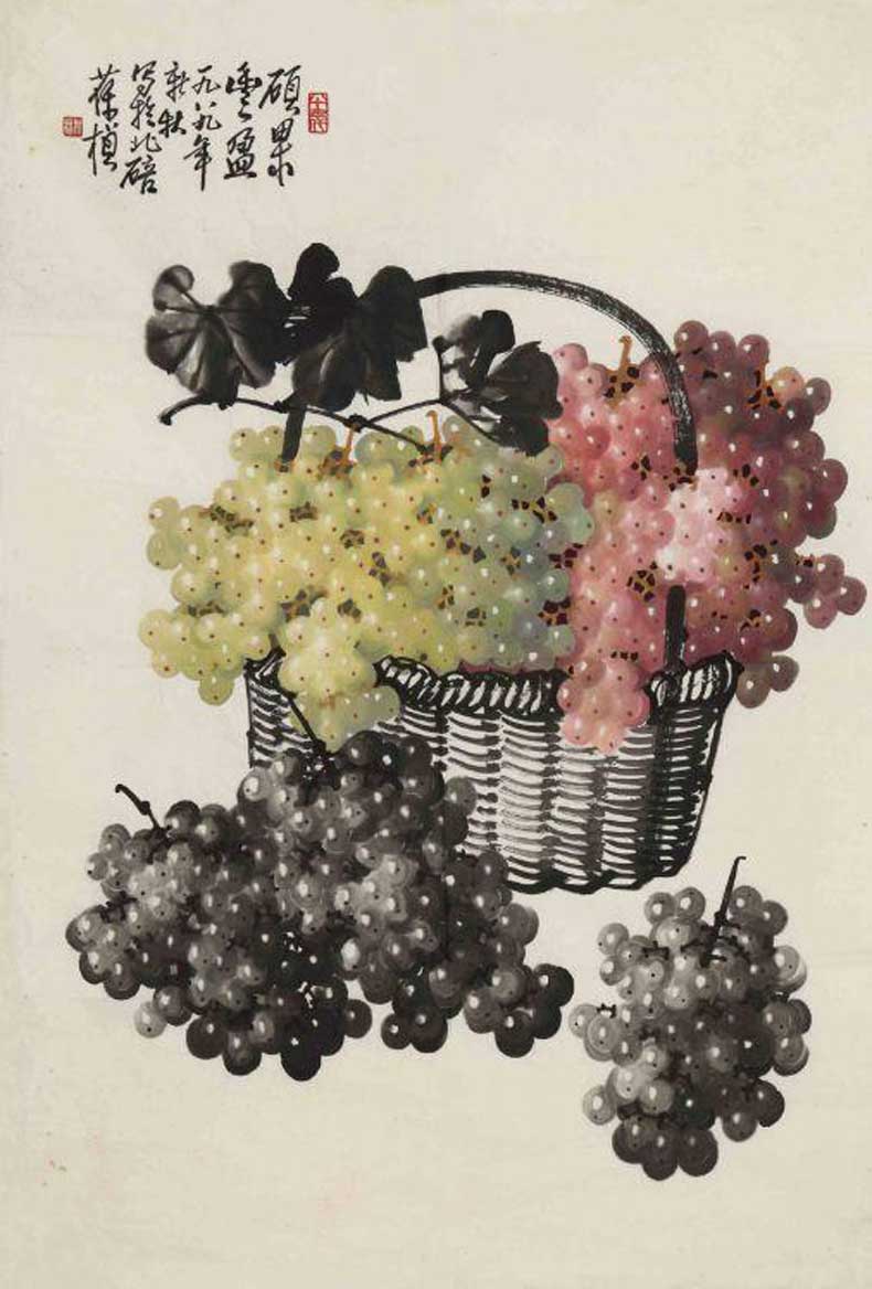 苏葆桢(1916-1990),著名国画家,师从徐悲鸿、张书旂、傅抱石等大家,江苏省宿迁市埠子镇苏圩村人。西南师范大学教授,硕士生导师,原重庆国画院副院长。苏葆桢是一位取材广泛的花鸟画家,犹以画葡萄最享盛誉,是我国葡萄画的一代宗师。他画葡萄技法独特精湛,中西结合、洋为中用,推陈出新,把葡萄的画法推向一个新的高峰。