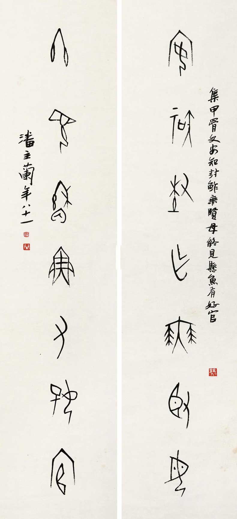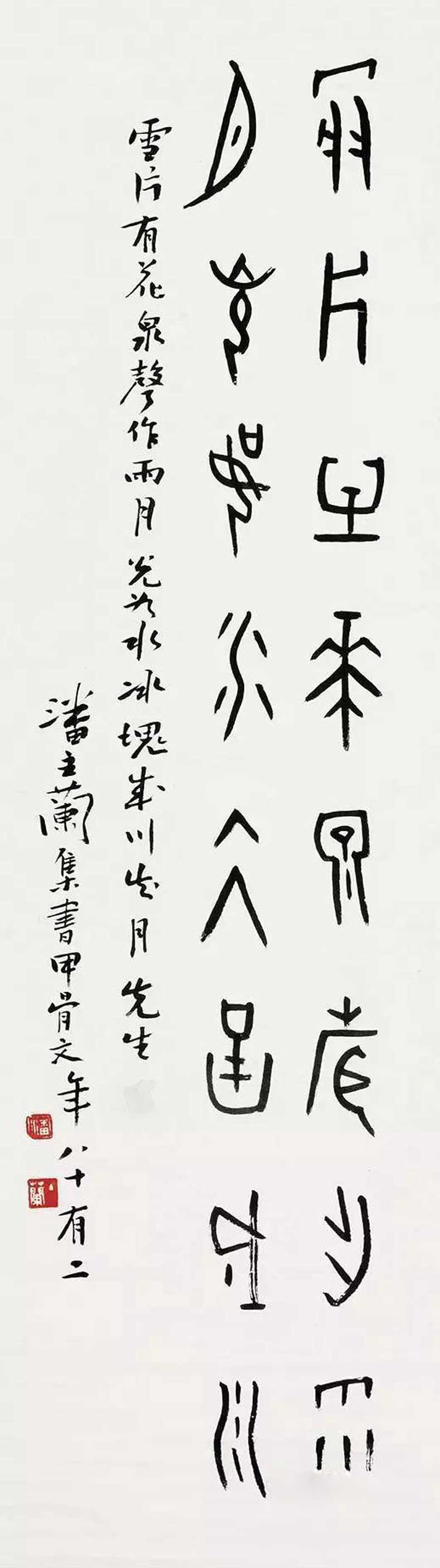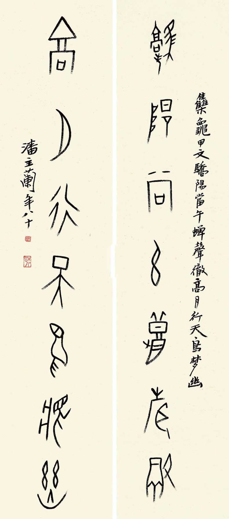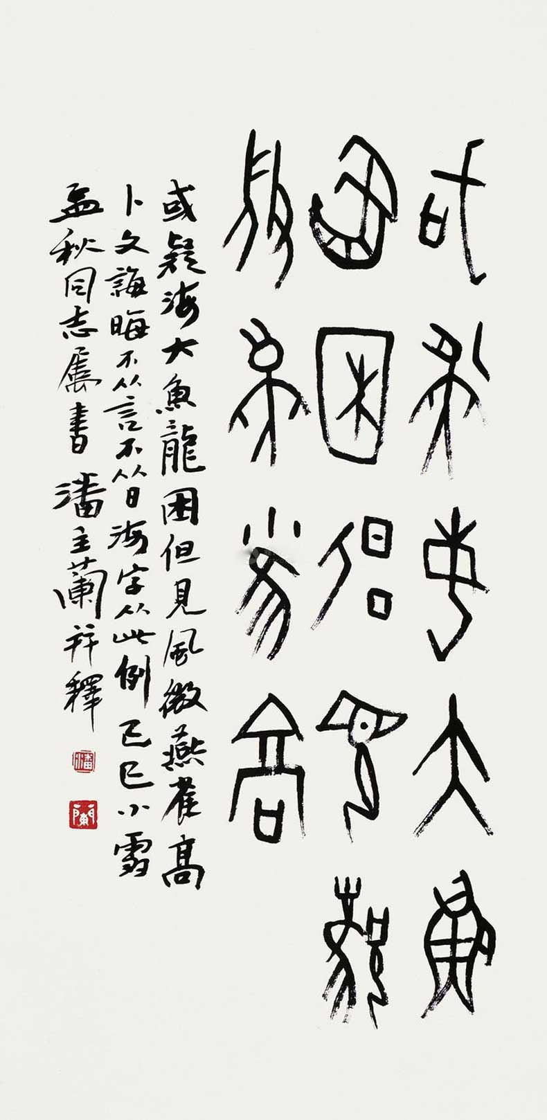 潘主兰先生在诗书画印、文字学以及寿山石文化等方面均有极高成就,潘主兰先生毕生致力于甲骨文字的研究,创作了大量的甲骨文书法作品,其运笔如刀,典雅高古,造诣湛深。印风浑古浑逸,作兰竹山水格调淡雅,惨淡中见平易,自成一格。