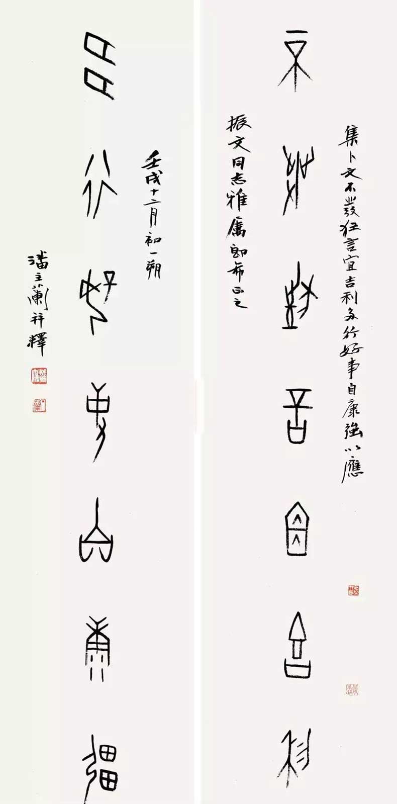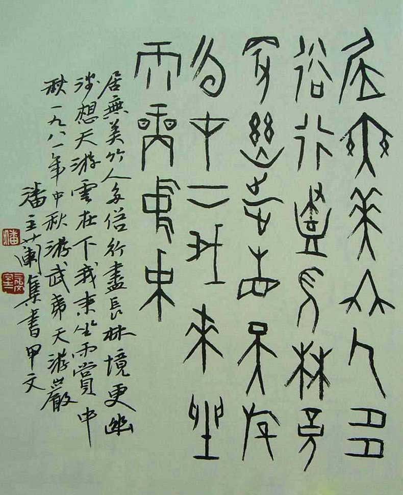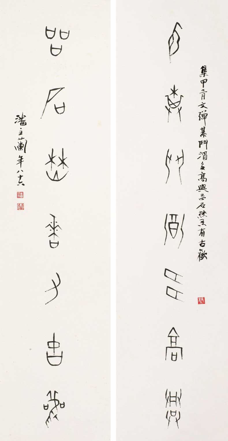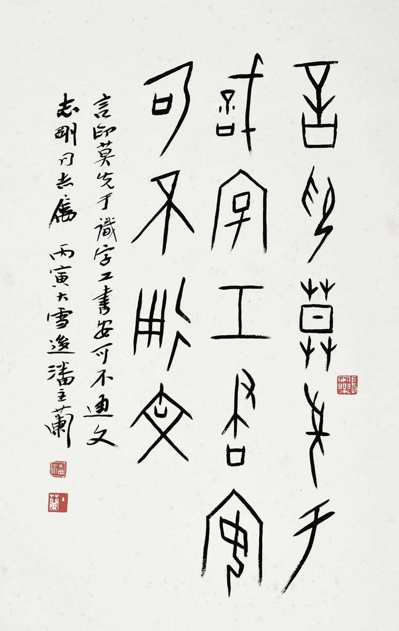 潘主兰先生在诗书画印、文字学以及寿山石文化等方面均有极高成就,潘主兰先生毕生致力于甲骨文字的研究,创作了大量的甲骨文书法作品,其运笔如刀,典雅高古,造诣湛深。印风浑古浑逸,作兰竹山水格调淡雅,惨淡中见平易,自成一格。