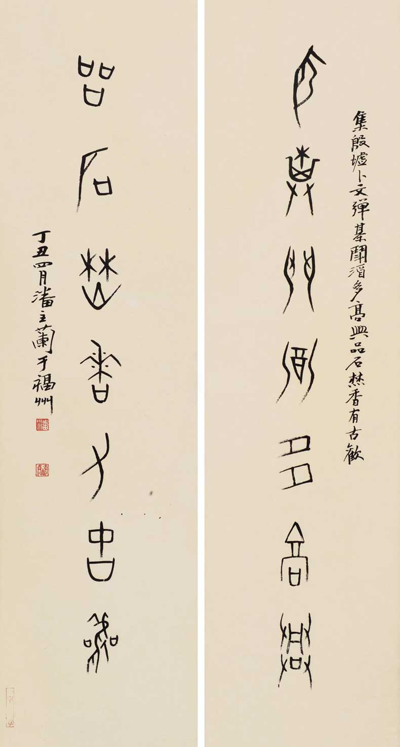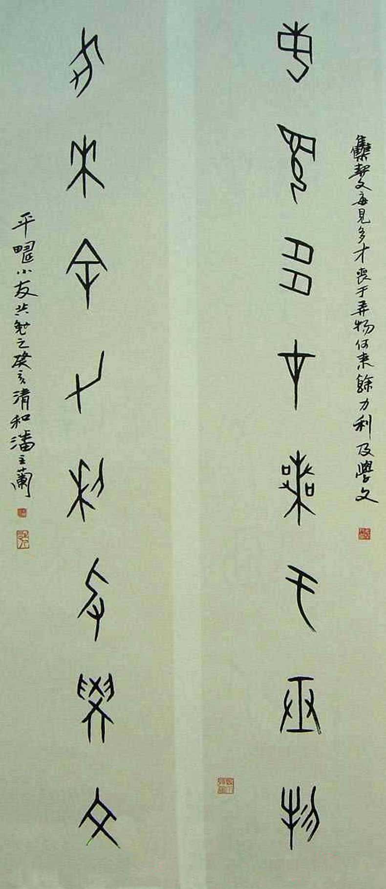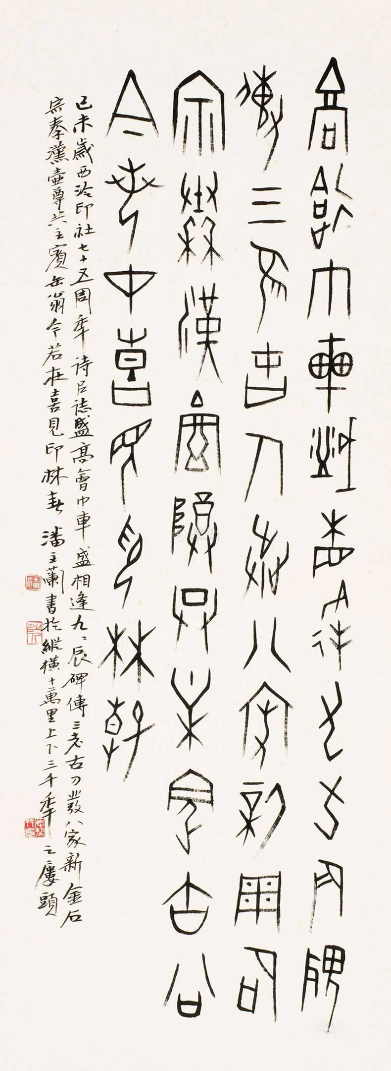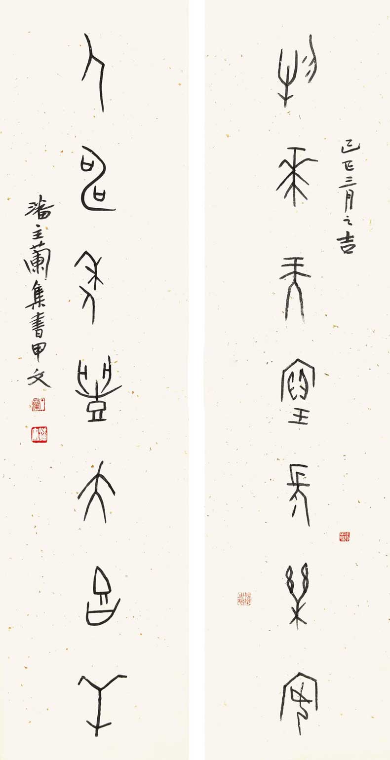 潘主兰先生在诗书画印、文字学以及寿山石文化等方面均有极高成就,潘主兰先生毕生致力于甲骨文字的研究,创作了大量的甲骨文书法作品,其运笔如刀,典雅高古,造诣湛深。印风浑古浑逸,作兰竹山水格调淡雅,惨淡中见平易,自成一格。