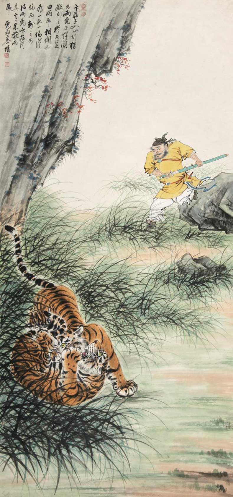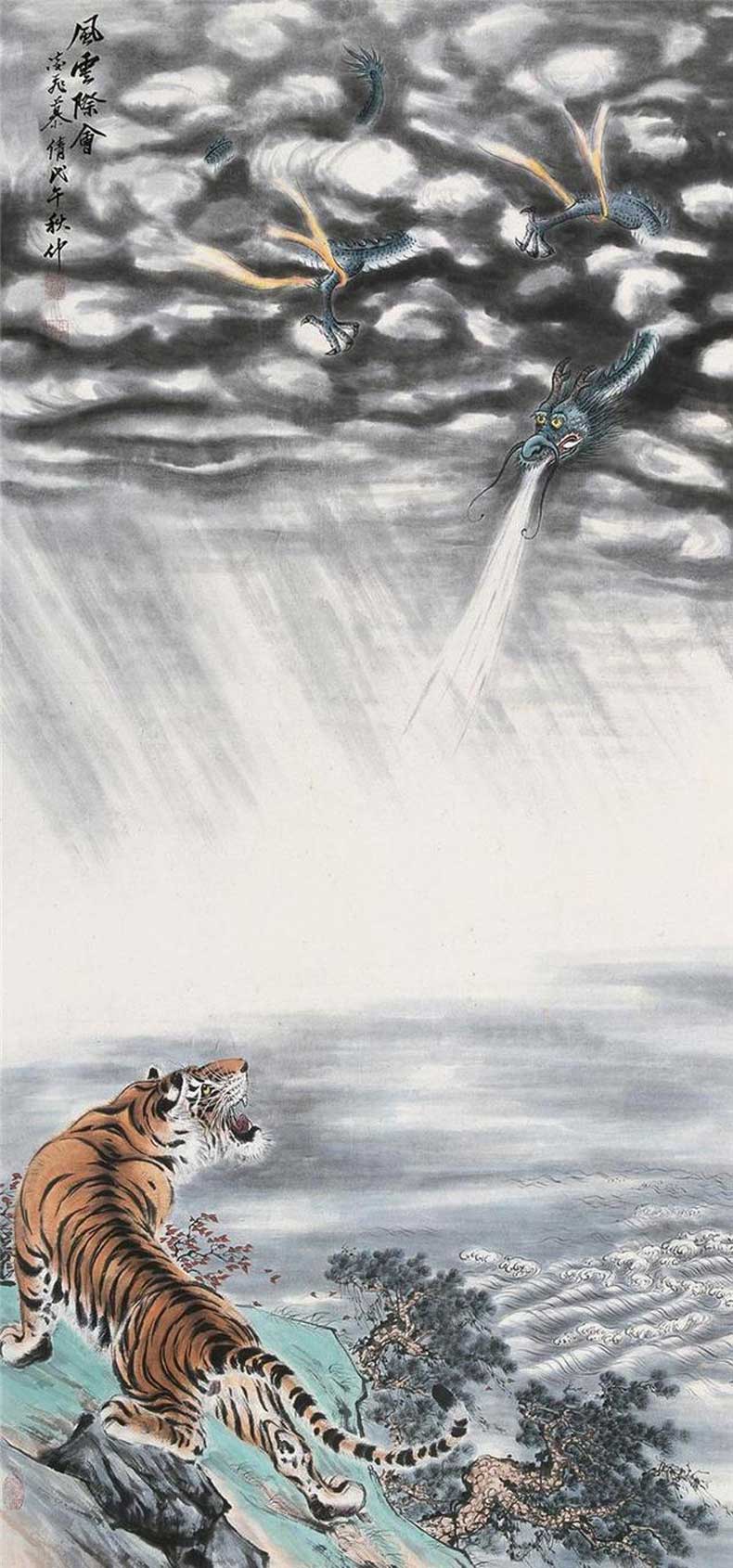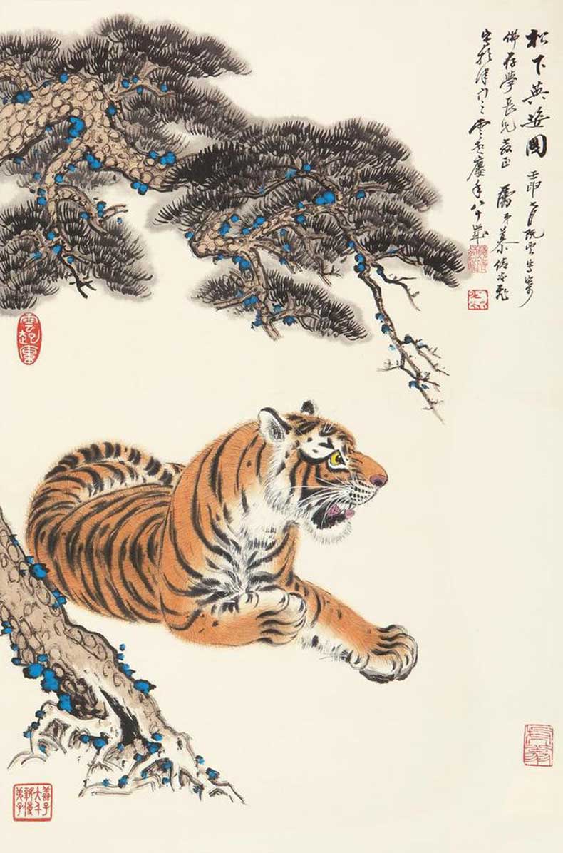 慕凌飞先生为实现张善孖先生的心愿,不负大千先生的嘱托,历时三十余载,于1982年匠心独运地完成了中国画坛第一幅《百虎图》长卷,轰动了海内外,被誉为中国画艺苑中的一枝奇葩,中国的国宝。