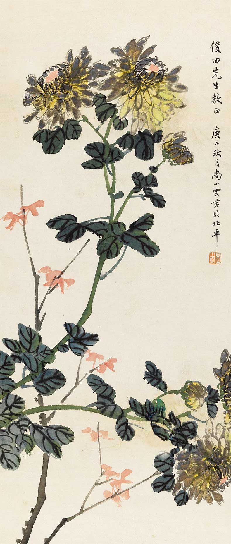 尚小云(1900~1976),名德泉,字绮霞,河北南宫人。著名京剧艺术大师,四大名旦之一。工书画,曾得陈师曾、姚芒父诸人指授。所作花卉,颇有意味。