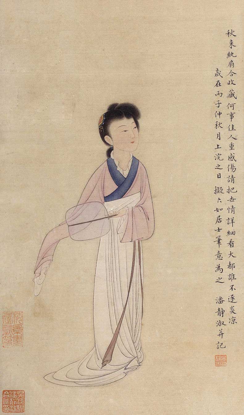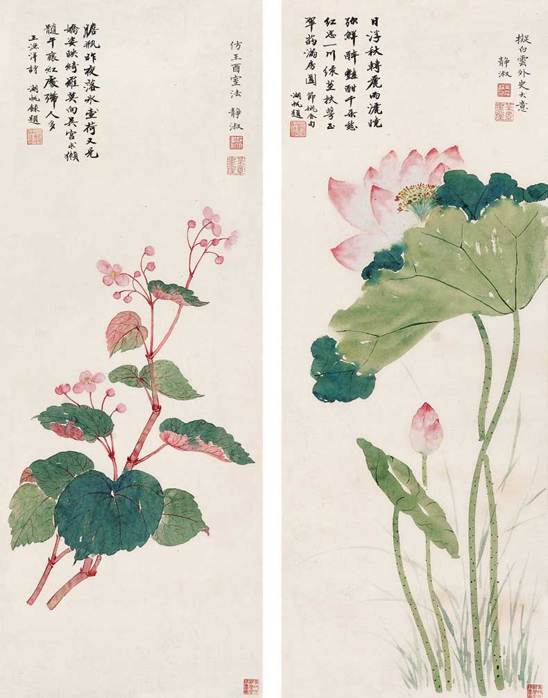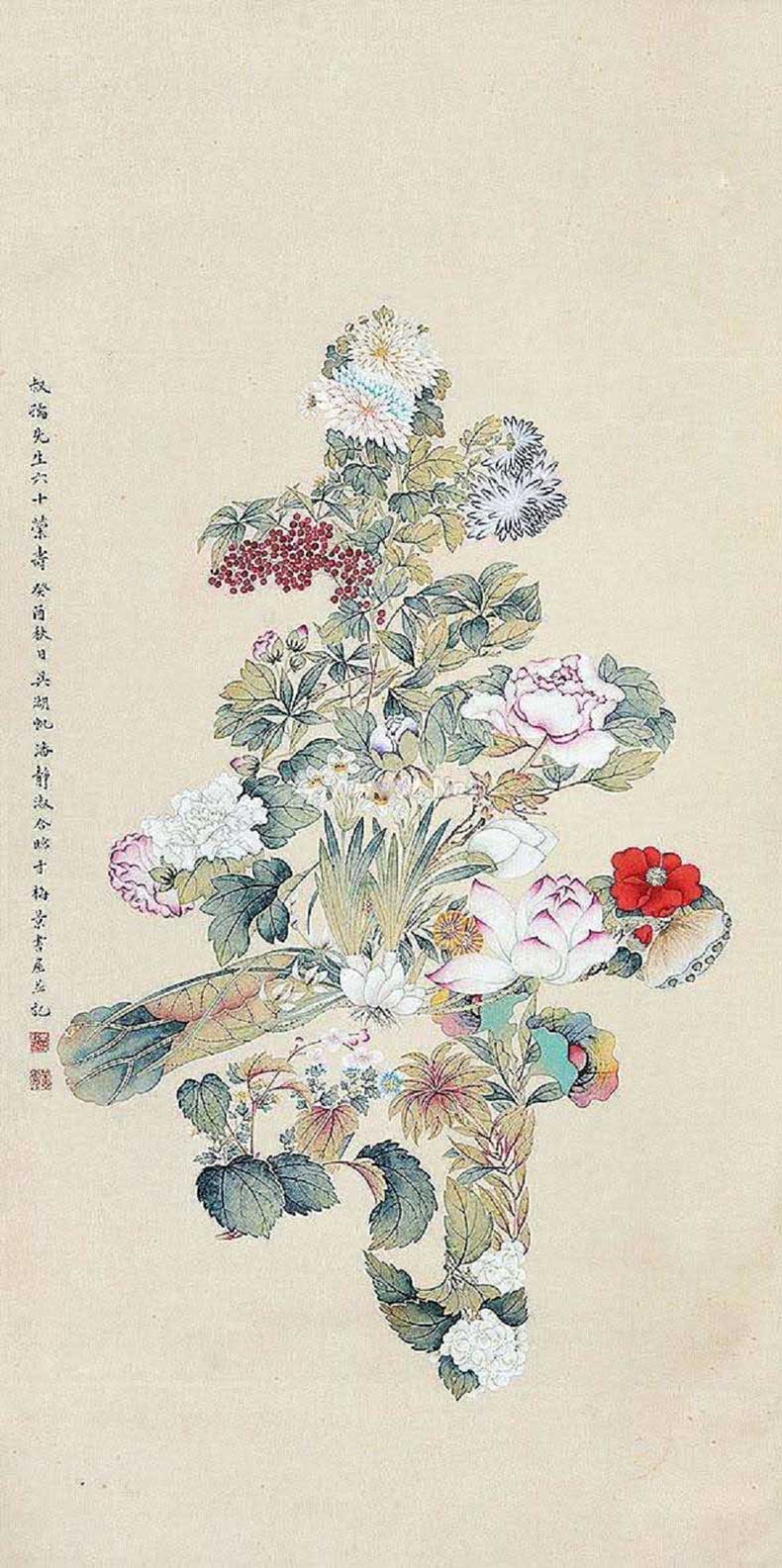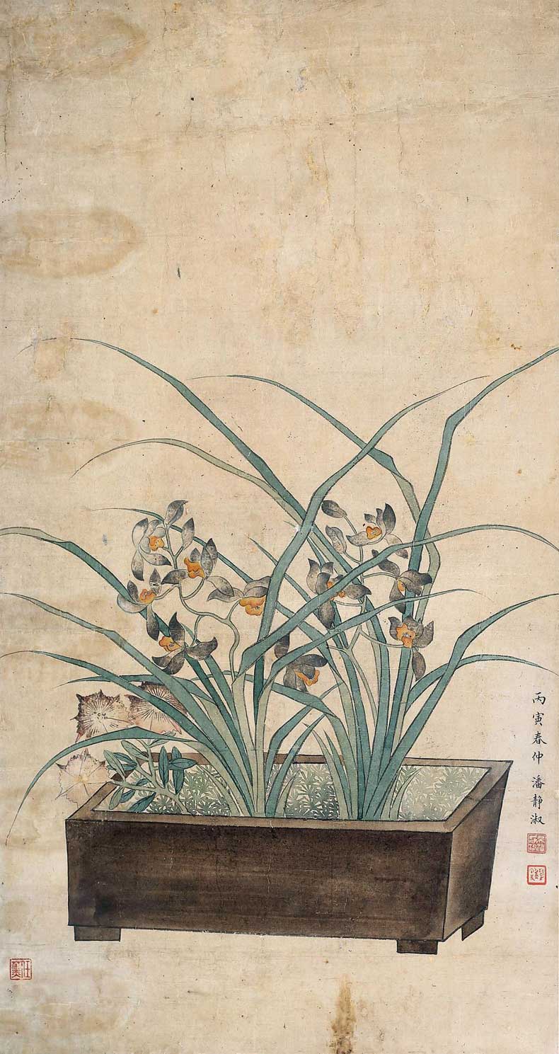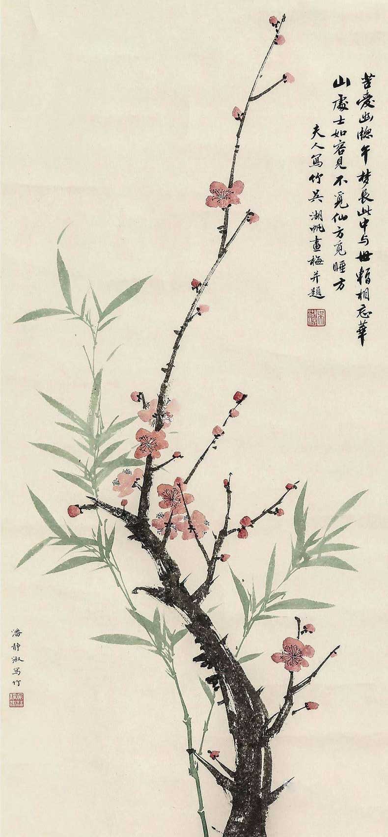 潘静淑(1892~1939),名树春。吴门大画家吴湖帆夫人。擅花卉,神韵超逸,窥宋元藩篱。出身于苏州显赫的“贵潘”,是潘祖年的次女。曾祖潘世恩是乾隆五十八年状元,官至大学士,加太子太傅,位及人臣。祖父潘曾莹,官至工部侍郎,是当时有名的诗人和画家。伯父潘祖荫,咸丰二年探花,官至工部尚书、军机大臣,名气最大。