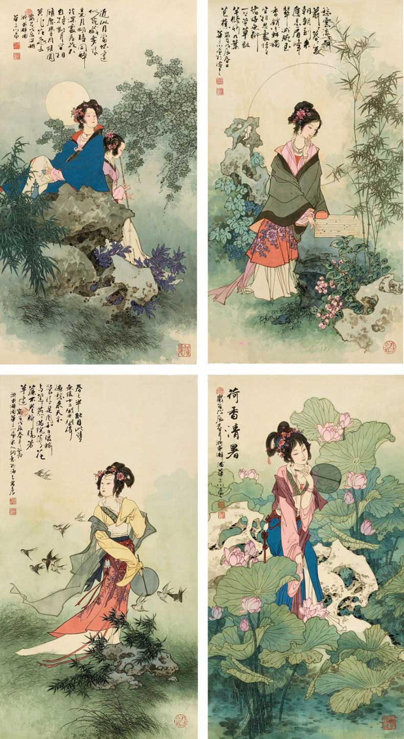 华三川工笔仕女作品欣赏