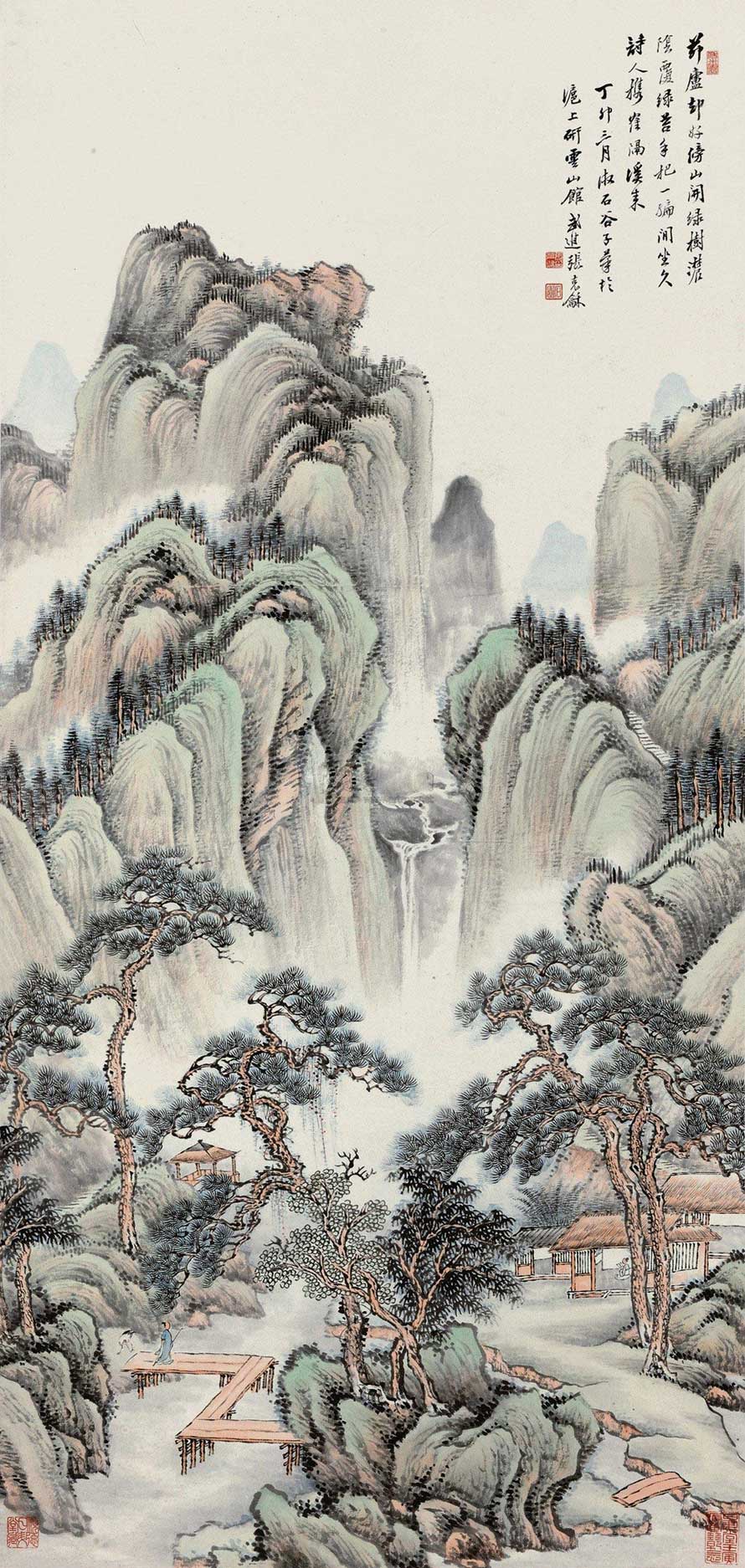 自幼即治金石之学,而于古书、画有癖嗜。画宗王翚。而上窥宋、元,晚年亦能实地写生。所做山水颇有雄厚气象。卒年六十二。石园先生在海派画家中,是一位具有重要地位的大家,其传统功力之深厚,在当时画坛,首屈一指。一般而言,大家都推其临王石谷为第一,其实,石园先生所作,临唐寅和倪云林等宋元明诸家,亦能得其神韵,这点,张先生足可傲视群雄。