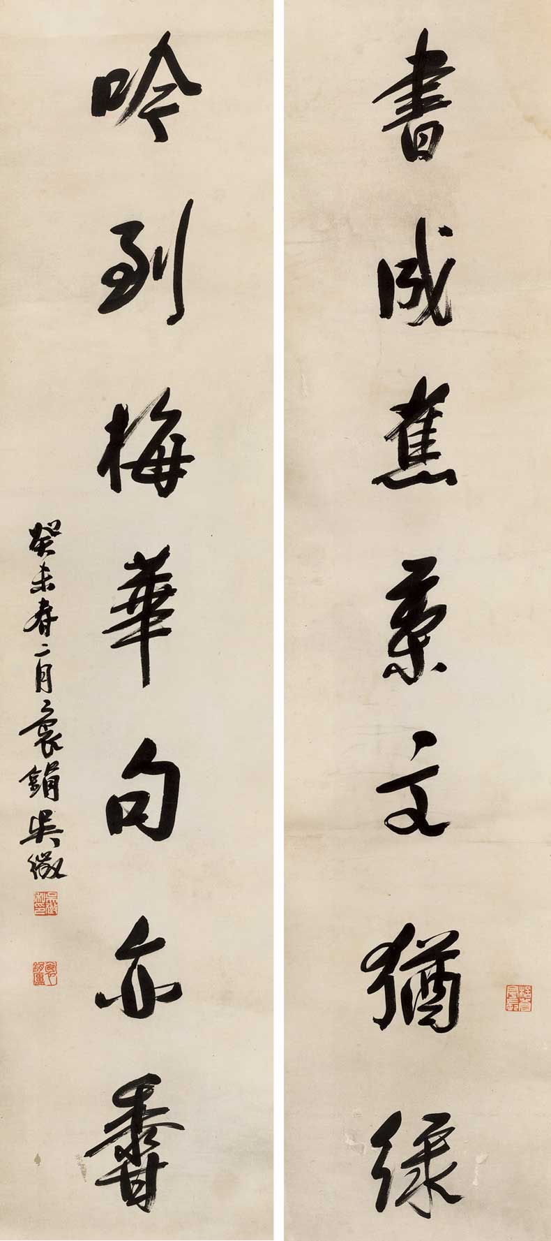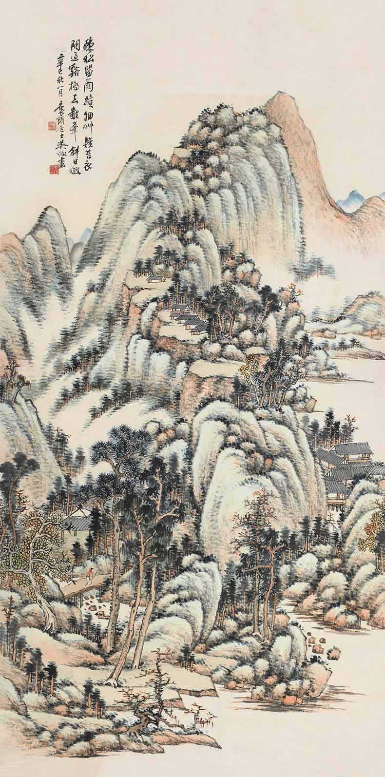吴徵(1878~1949),字待秋,号春辉外史、鹭鸶湾人、袌鋗居士,室名来鹭草堂,浙江桐乡人。吴滔仲子。山水初承家学,后专攻四王一路,用笔凝重。亦善花卉,特擅写梅,名重一时。书法精行草。为海上“三吴一冯”之一。