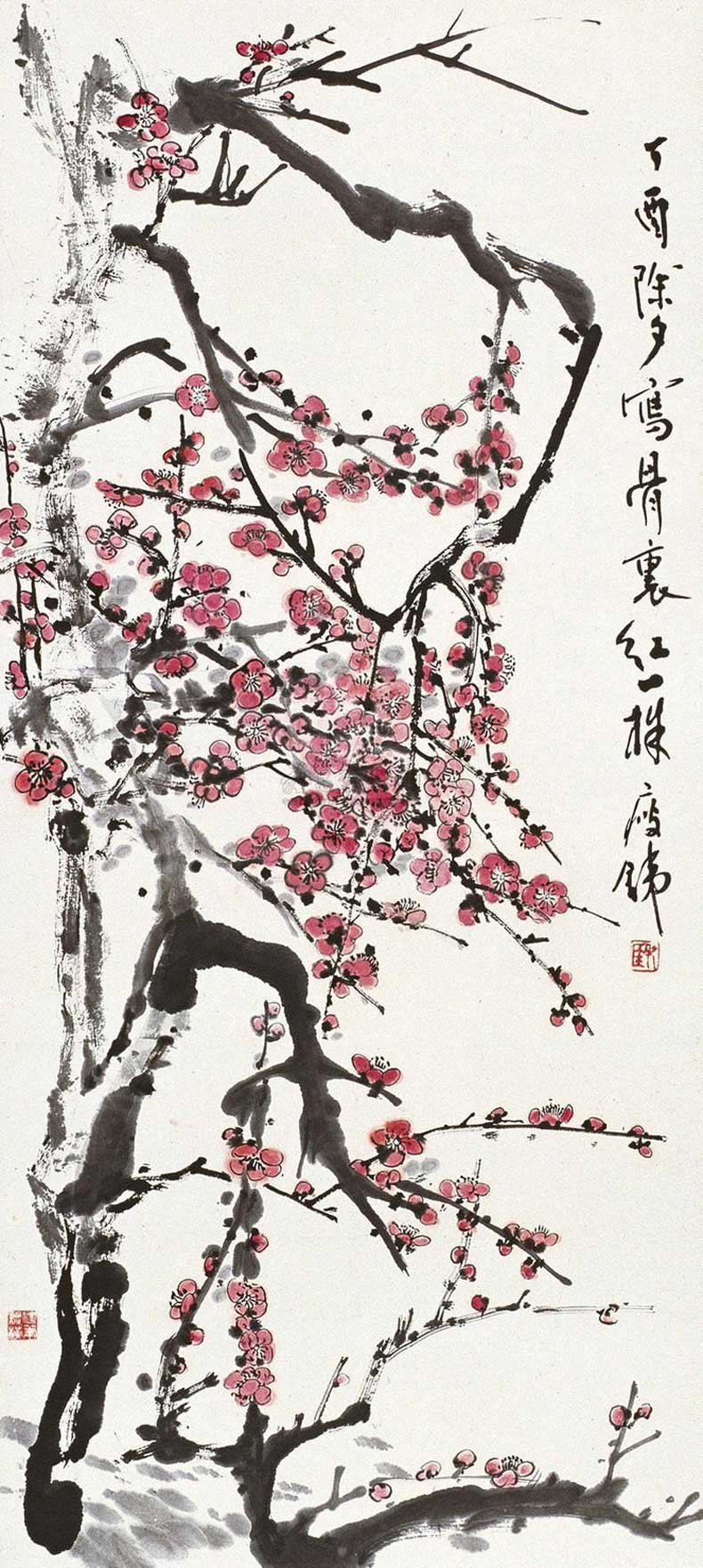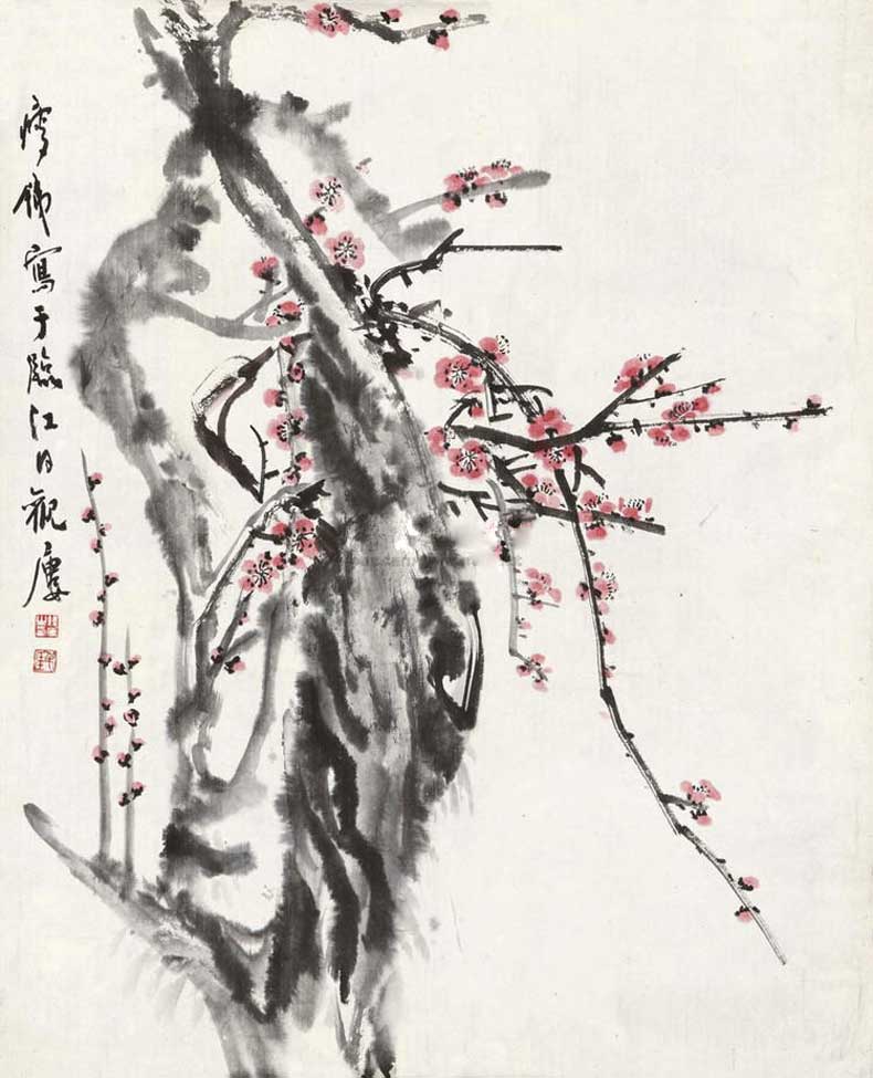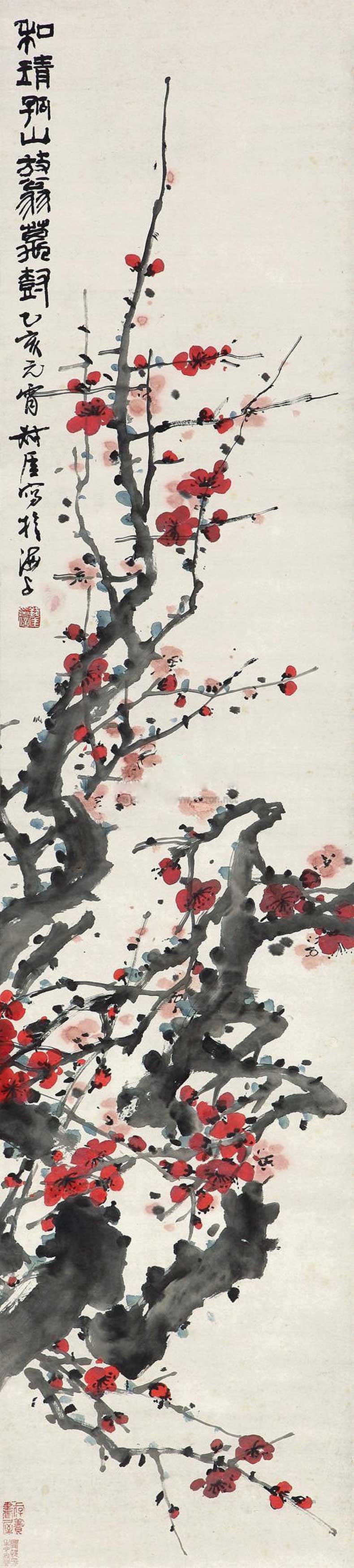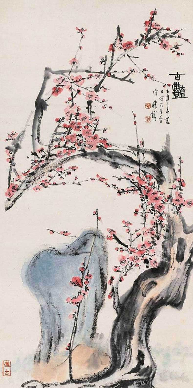 钱瘦铁(1897 1967),名崖,字叔崖,号瘦铁,以号行,别号数青峰馆主、天池龙泓斋主等,江苏省无锡市鸿声里人,中国近现代书画家,中国画会创始人之一。花卉似沈周、徐渭,设色沉着古艳,着墨苍秀,常以篆书法写干枝,以草书法圈梅花,风骨劲峭。