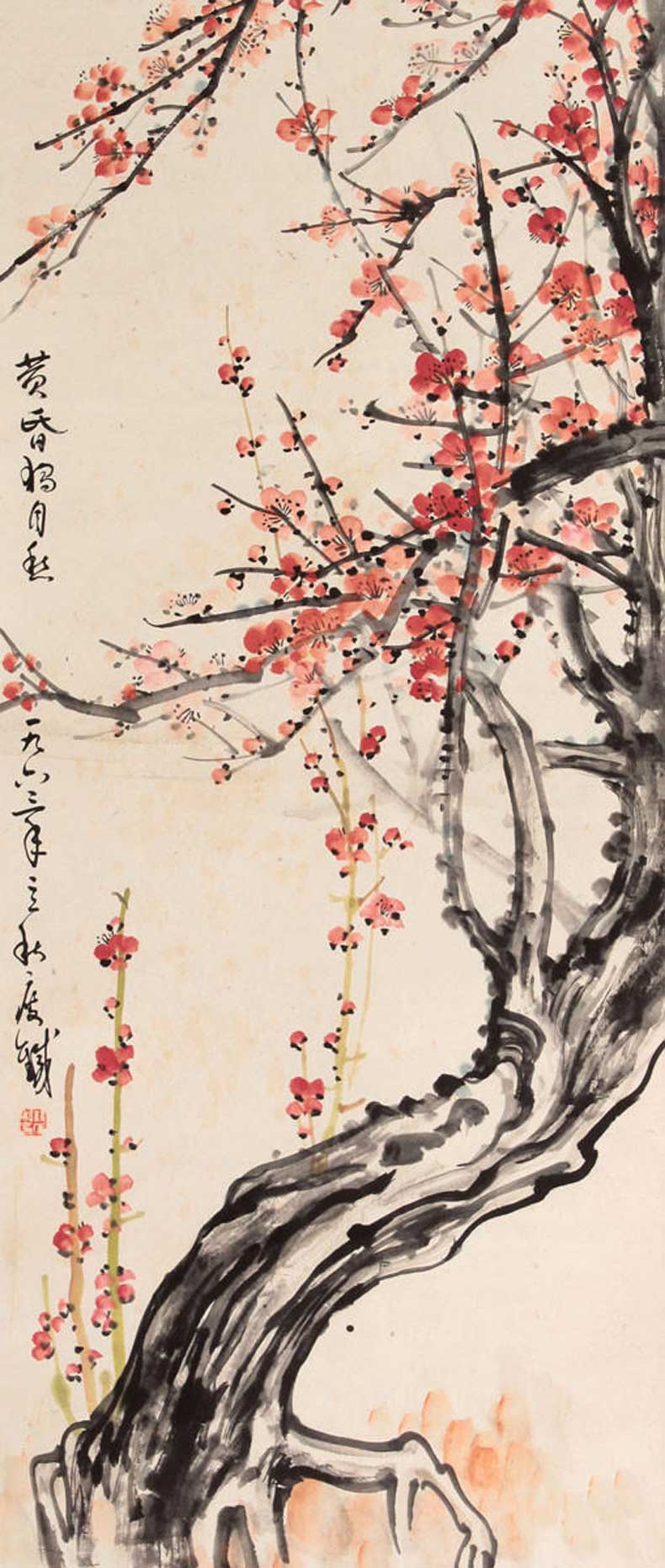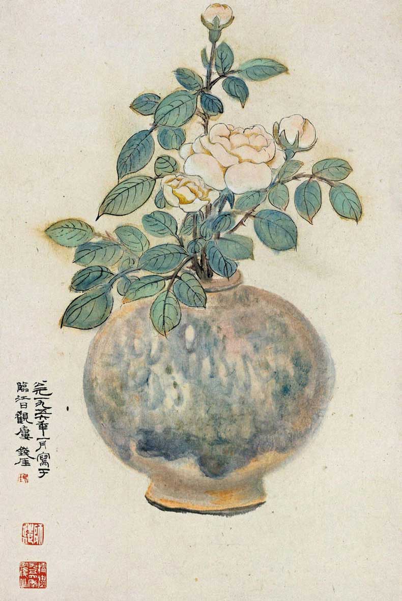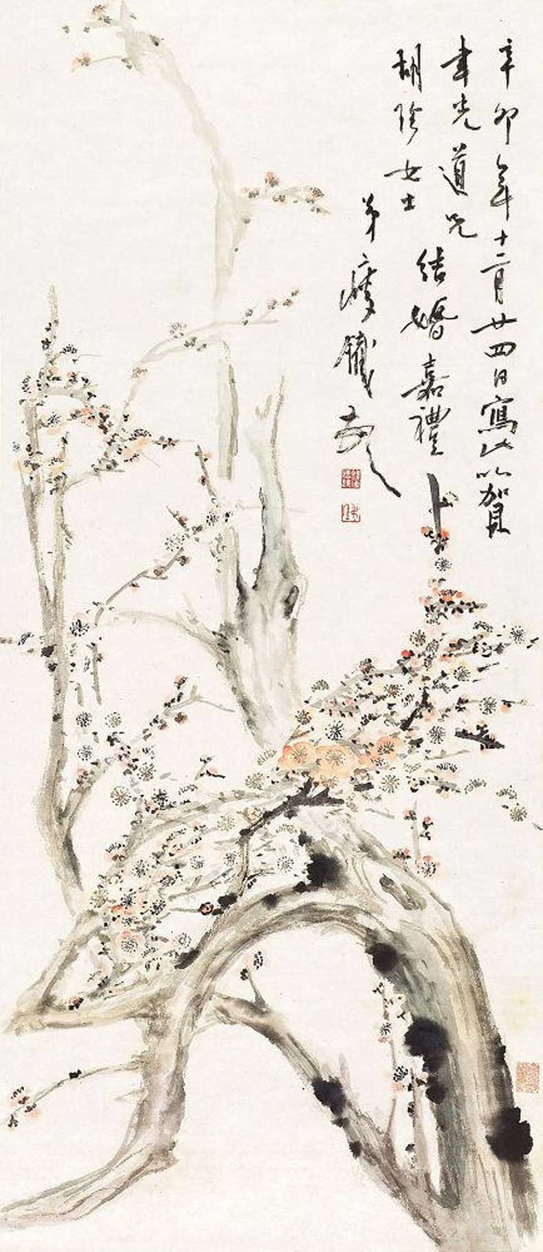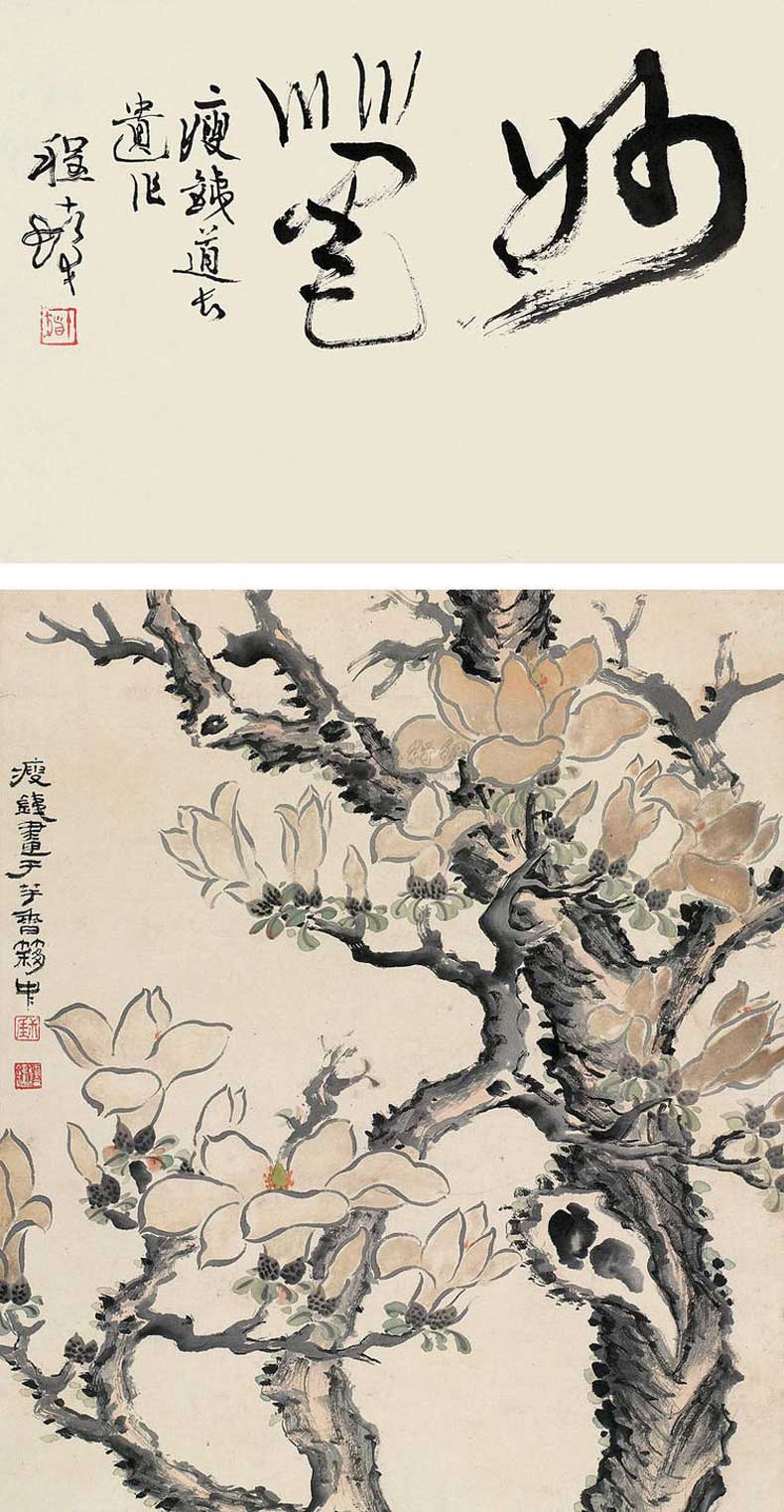 钱瘦铁(1897 1967),名崖,字叔崖,号瘦铁,以号行,别号数青峰馆主、天池龙泓斋主等,江苏省无锡市鸿声里人,中国近现代书画家,中国画会创始人之一。花卉似沈周、徐渭,设色沉着古艳,着墨苍秀,常以篆书法写干枝,以草书法圈梅花,风骨劲峭。