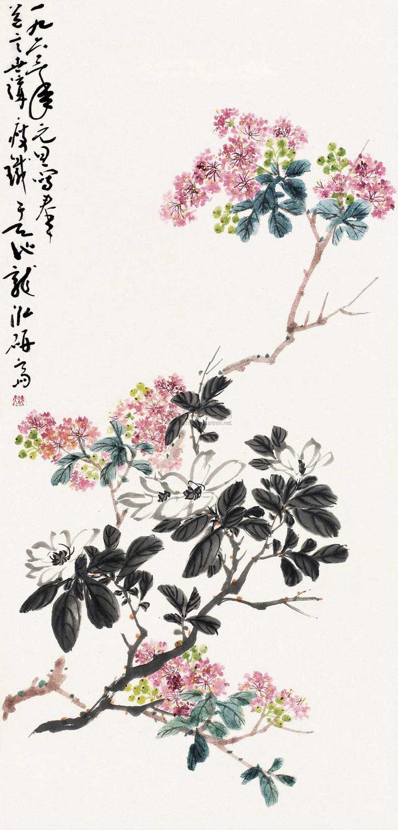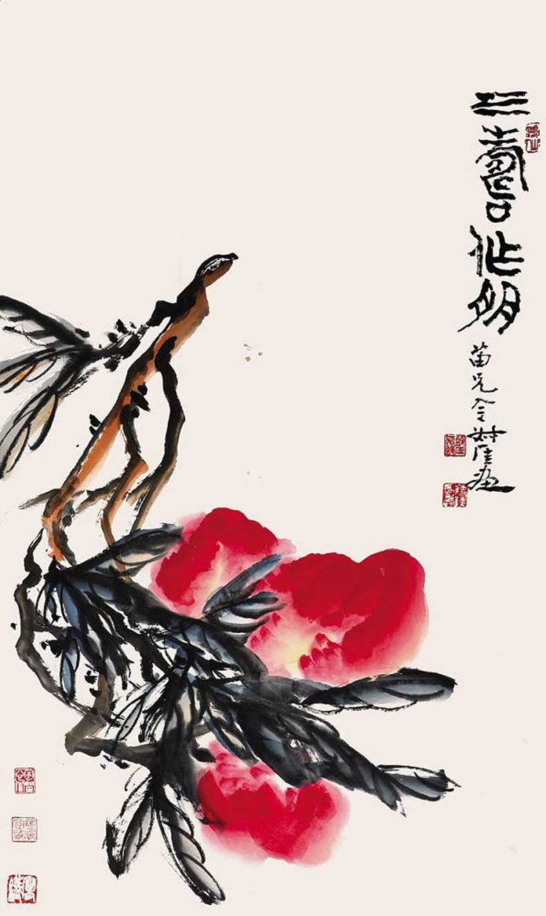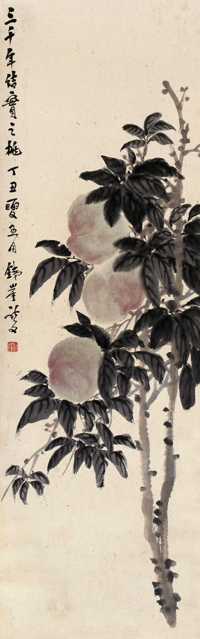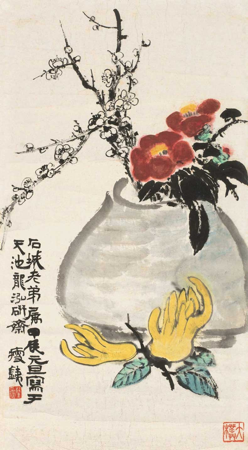 钱瘦铁(1897 1967),名崖,字叔崖,号瘦铁,以号行,别号数青峰馆主、天池龙泓斋主等,江苏省无锡市鸿声里人,中国近现代书画家,中国画会创始人之一。花卉似沈周、徐渭,设色沉着古艳,着墨苍秀,常以篆书法写干枝,以草书法圈梅花,风骨劲峭。