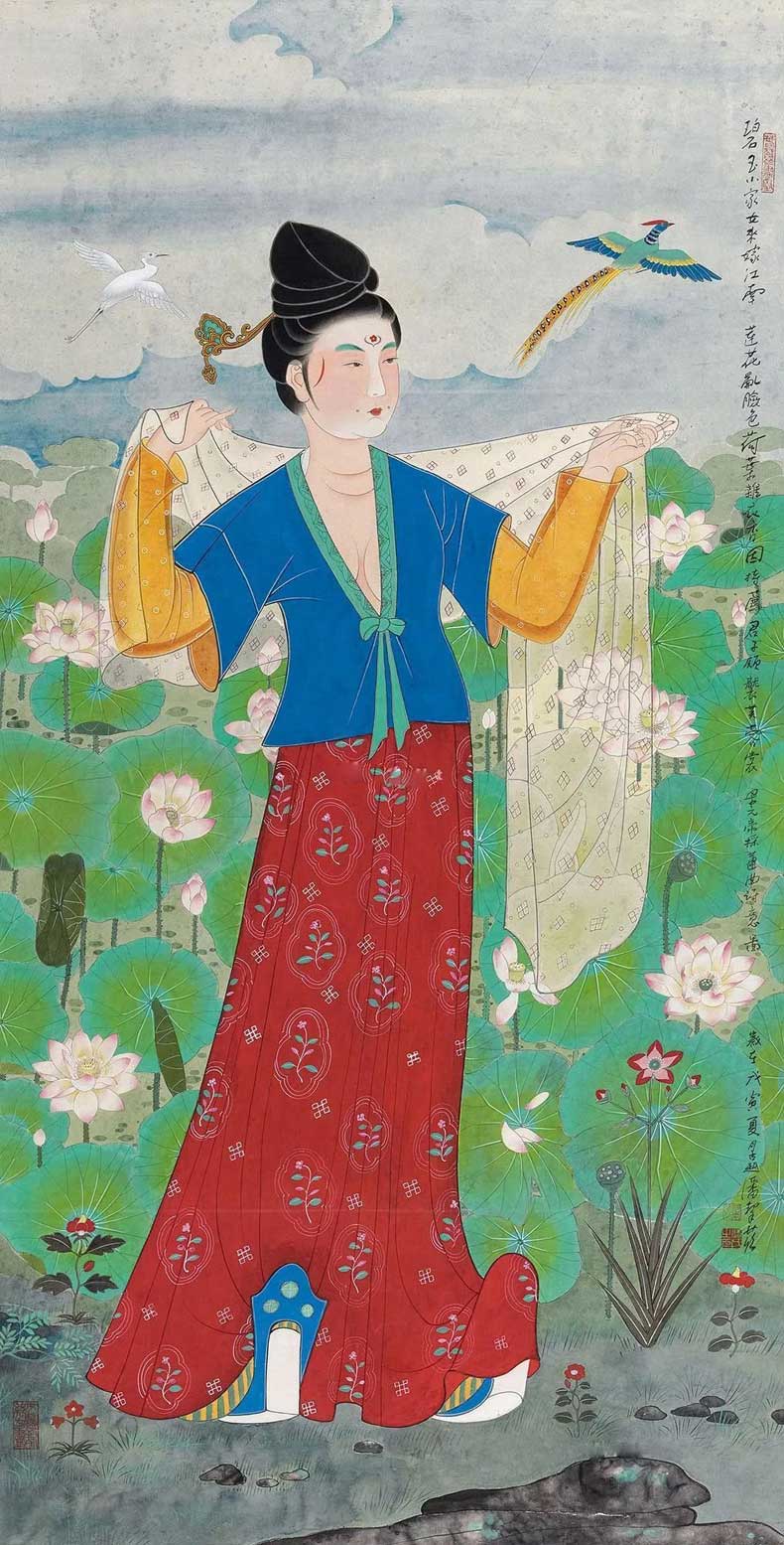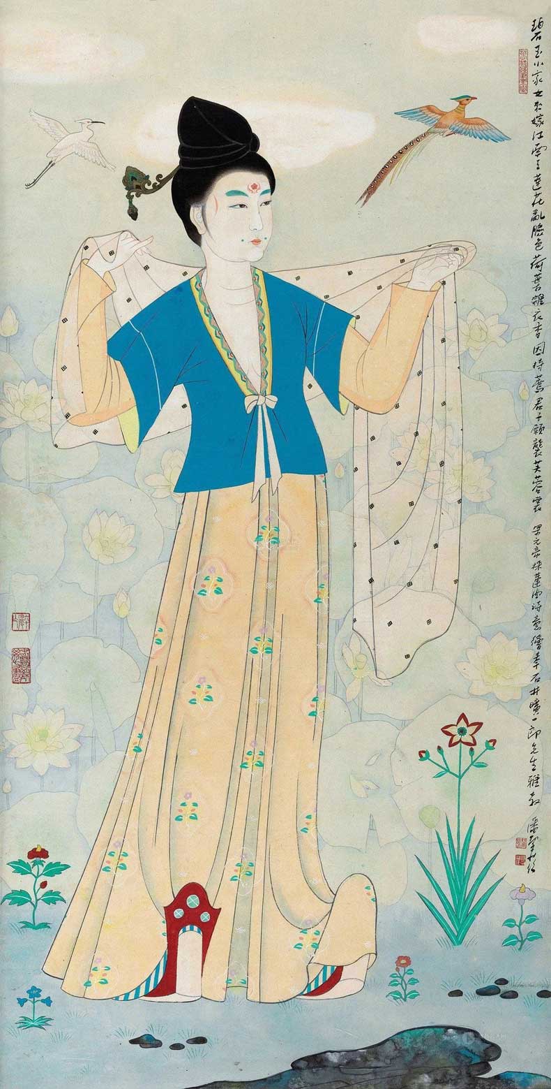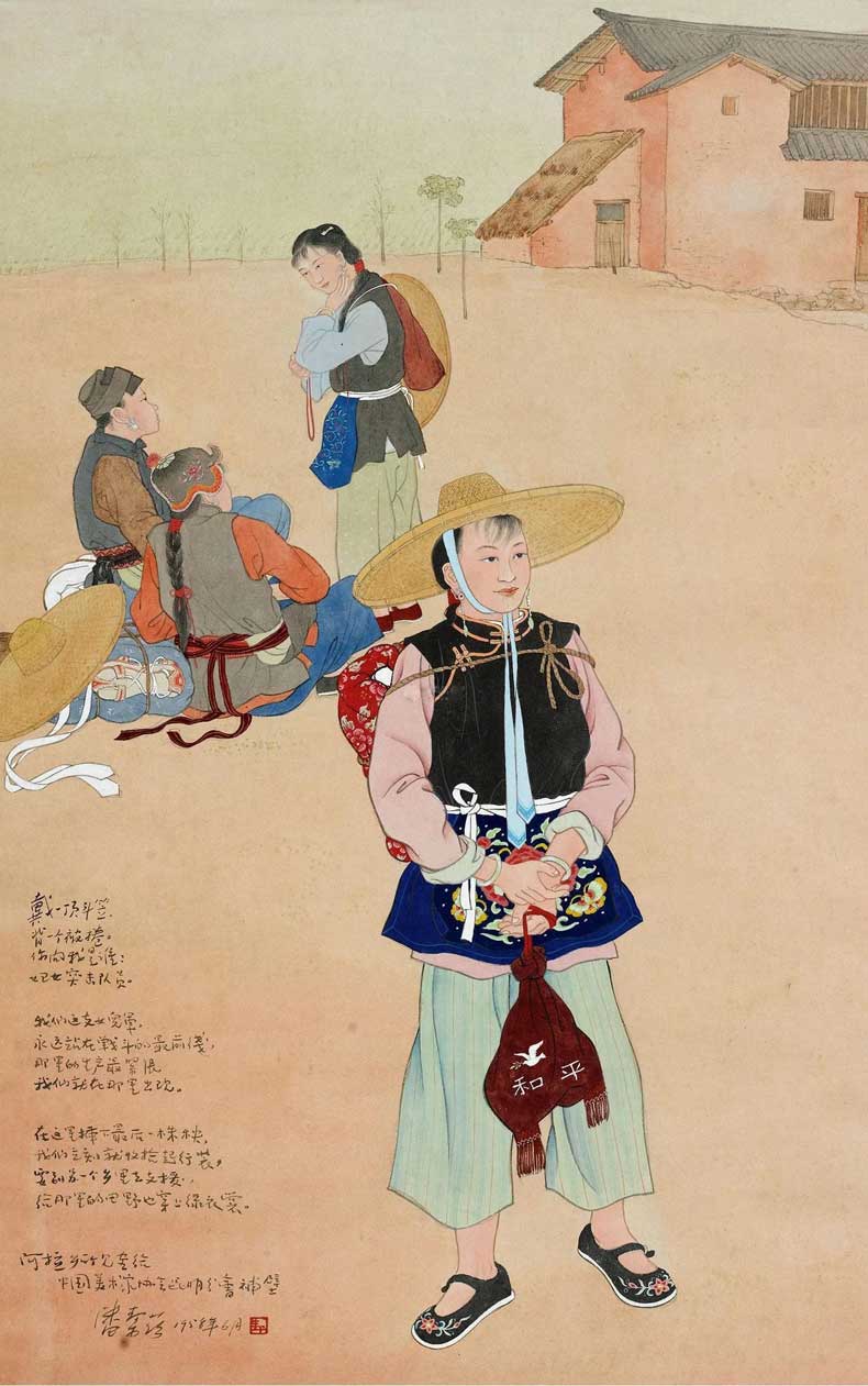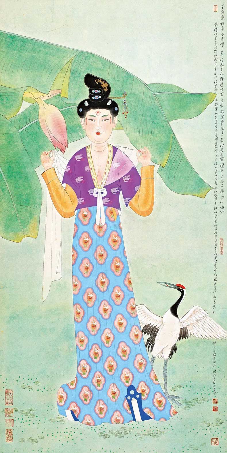 潘絜兹(1915~2002),当代著名工笔人物画家。原名昌邦,浙江宣平人。师事吴光宇、徐燕孙,专攻工笔重彩人物画。1937年入伍,1945年到国立敦煌艺术研究所从事古代壁画的临摹研究工作。曾任台湾台北民众教育馆艺术部主任,后得于右任先生资助,从事敦煌艺术研究。历任中国历史博物馆美术组组长,《美术》月刊编辑,《中国画》主编,北京画院专业画师及艺术委员会副主任,北京工笔画会会长,中国美术家协会北京分会副主席。