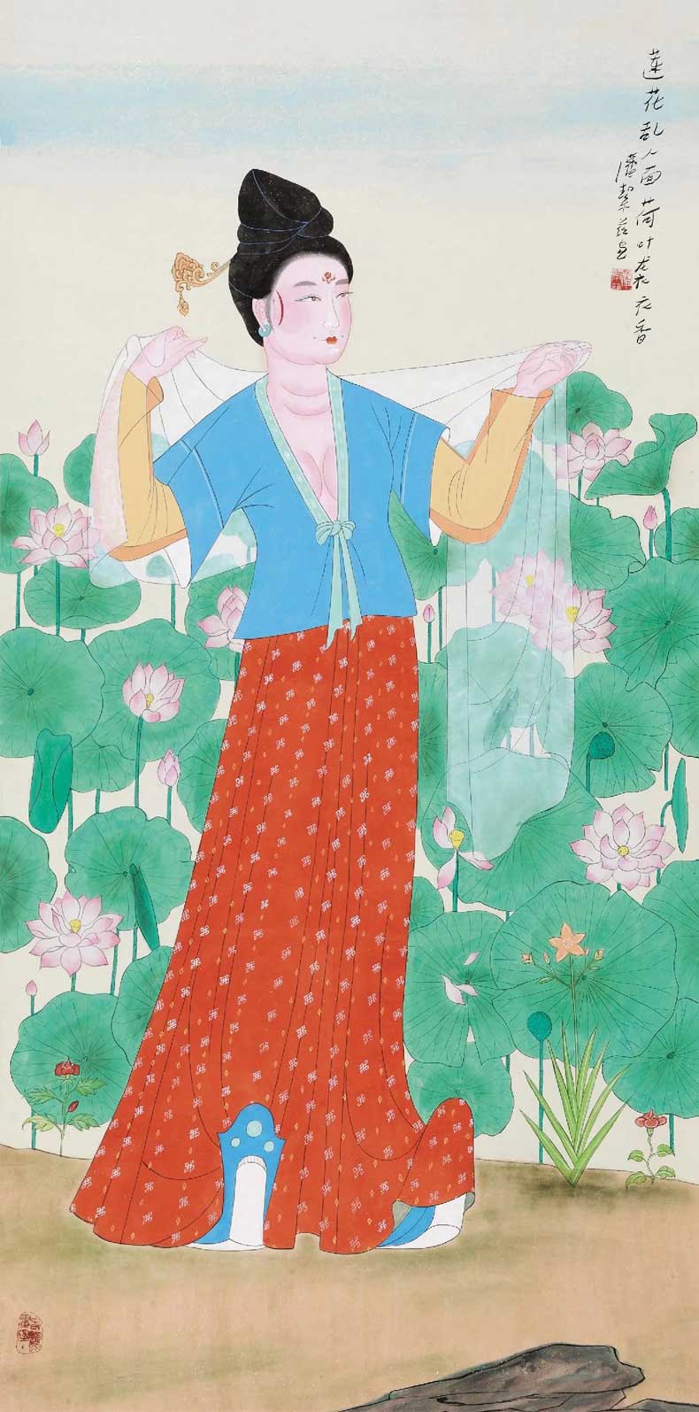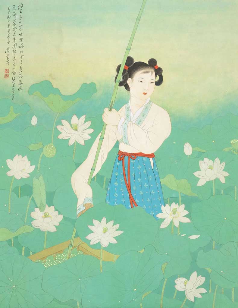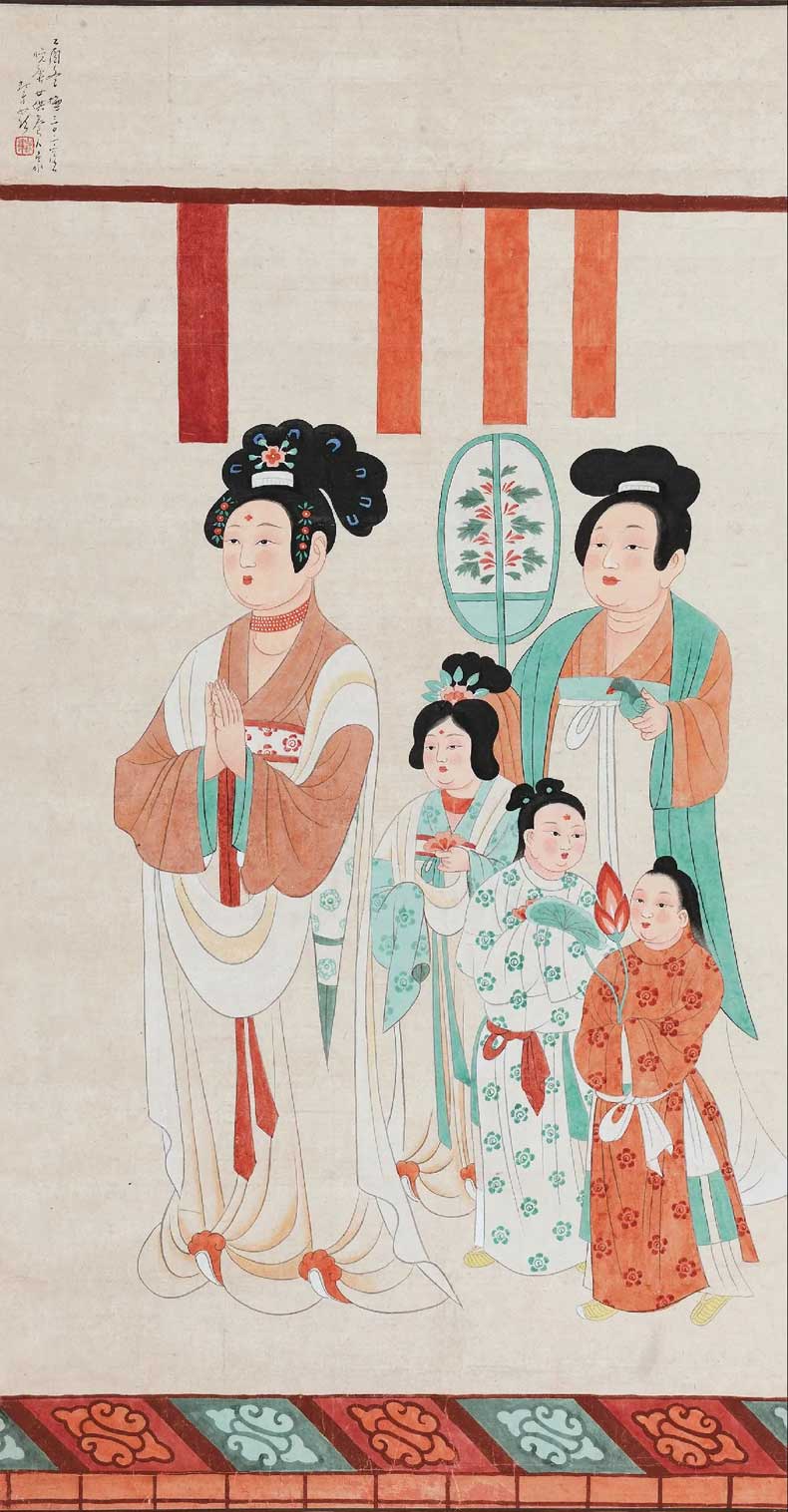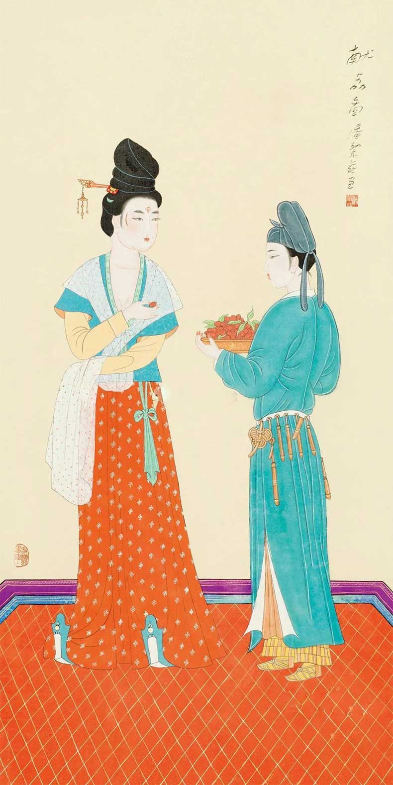 潘絜兹(1915~2002),当代著名工笔人物画家。原名昌邦,浙江宣平人。师事吴光宇、徐燕孙,专攻工笔重彩人物画。1937年入伍,1945年到国立敦煌艺术研究所从事古代壁画的临摹研究工作。曾任台湾台北民众教育馆艺术部主任,后得于右任先生资助,从事敦煌艺术研究。历任中国历史博物馆美术组组长,《美术》月刊编辑,《中国画》主编,北京画院专业画师及艺术委员会副主任,北京工笔画会会长,中国美术家协会北京分会副主席。