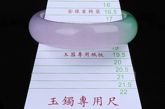 玉镯在购买时商家一般会测量消费者的手镯圈口数据,第一步先将大拇指的指尖放在小指的指根处并收紧,第二步使用软尺或细线测量手掌最宽处的周长,使用测量出的周长数据除以3.14,将得出的数据上添加1-2毫米,就可得出合适自己的手镯周长,再对照手镯圈口数据即可。