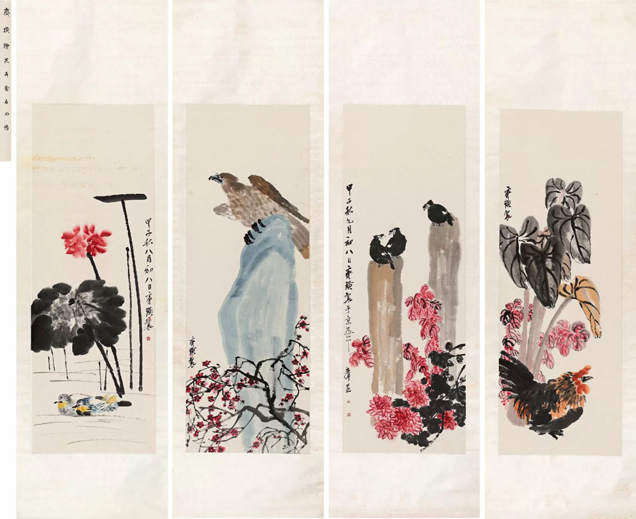 Top12. 1924年作 花卉禽石 四屏立轴 4370万