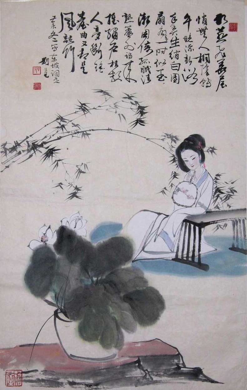 刘旦宅(1931~2011)原名浑,又名小粟,后改名旦宅,别名海云生,浙江温州人。擅人物,兼花鸟,取法汉唐人物、宋元山水及陈老莲和八大之花鸟,而融会贯通。工写兼长,又作减笔泼墨。海派现代人物画的领军人物之一。