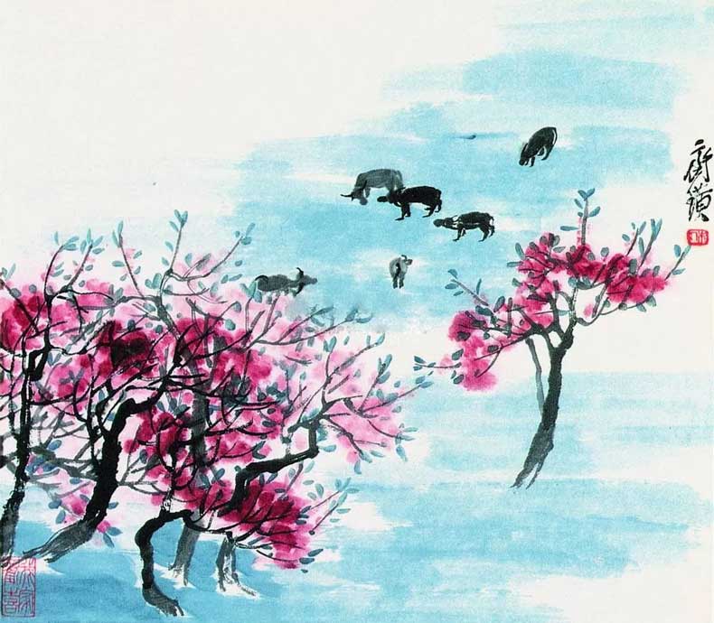 △桃花牧牛