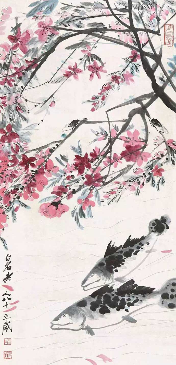 △齐白石《桃花鳜鱼》