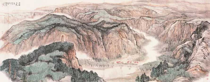 何海霞的自我是一定要同北京这座大一统的帝都重叠的。他生于北京,学画从宋代院体入手,于青绿山水与界画尤具慧心,入于大风堂,师从张大千,而大千先生恰恰又是20世纪山水画巨擘中最有庙堂气息的。何海霞个人灵根中具有这样的秉赋,使他不会坠入文人画的小天地。他师古人,师老师,已然在向着一个朦胧的方向前进,但看不清楚。改朝换代的政局丕变,带给何海霞戏剧性的人生。他被抛在了大西南,又只身飘零到西安,被赵望云、石鲁发现,成为“长安画派”的重要成员。从此乐不思蜀地在陕西滞留30年。这是一个极其重要的时期。没有这个时期,何海霞顶多是个“小张大千”。有了这个时期,“长安画派”的创作思想与艺术追求,便成了何海霞的硬约束,成为他必须要重新认识和学习的美学规范。他深入山川,深入生活,使自己及时地跟上时代步伐,从而逐渐地超越大风堂,与乃师张大千拉开了距离。