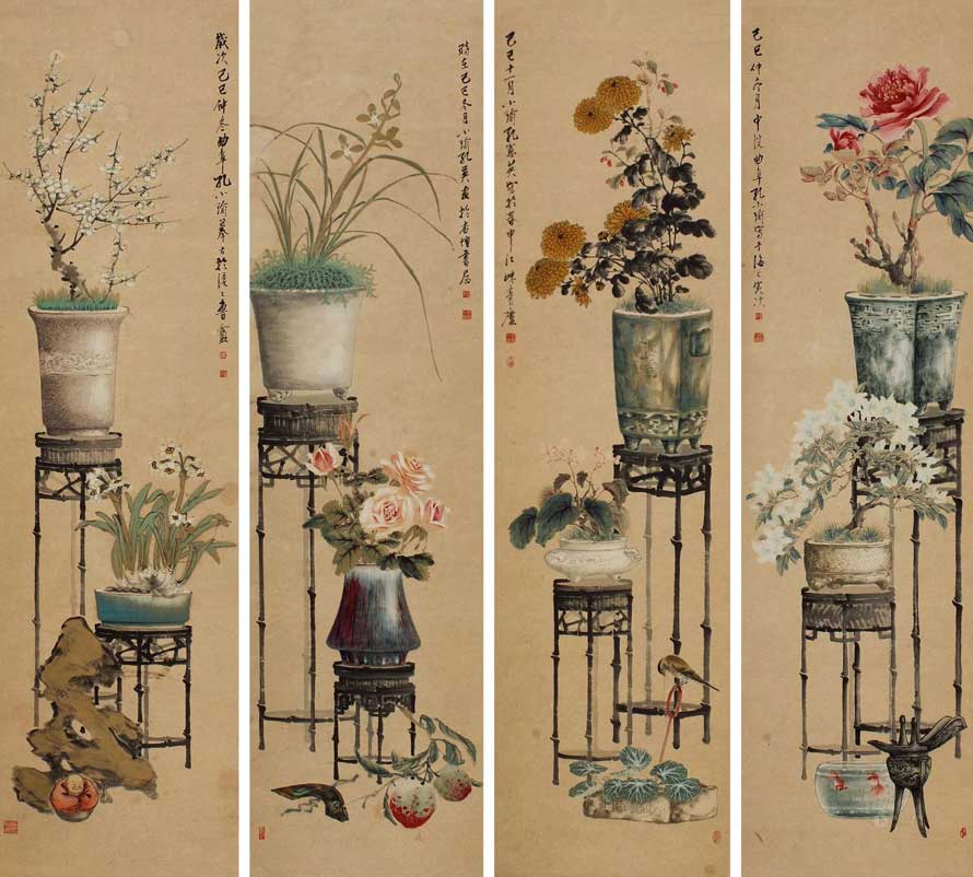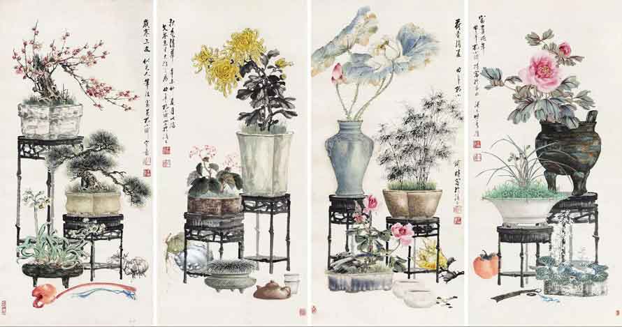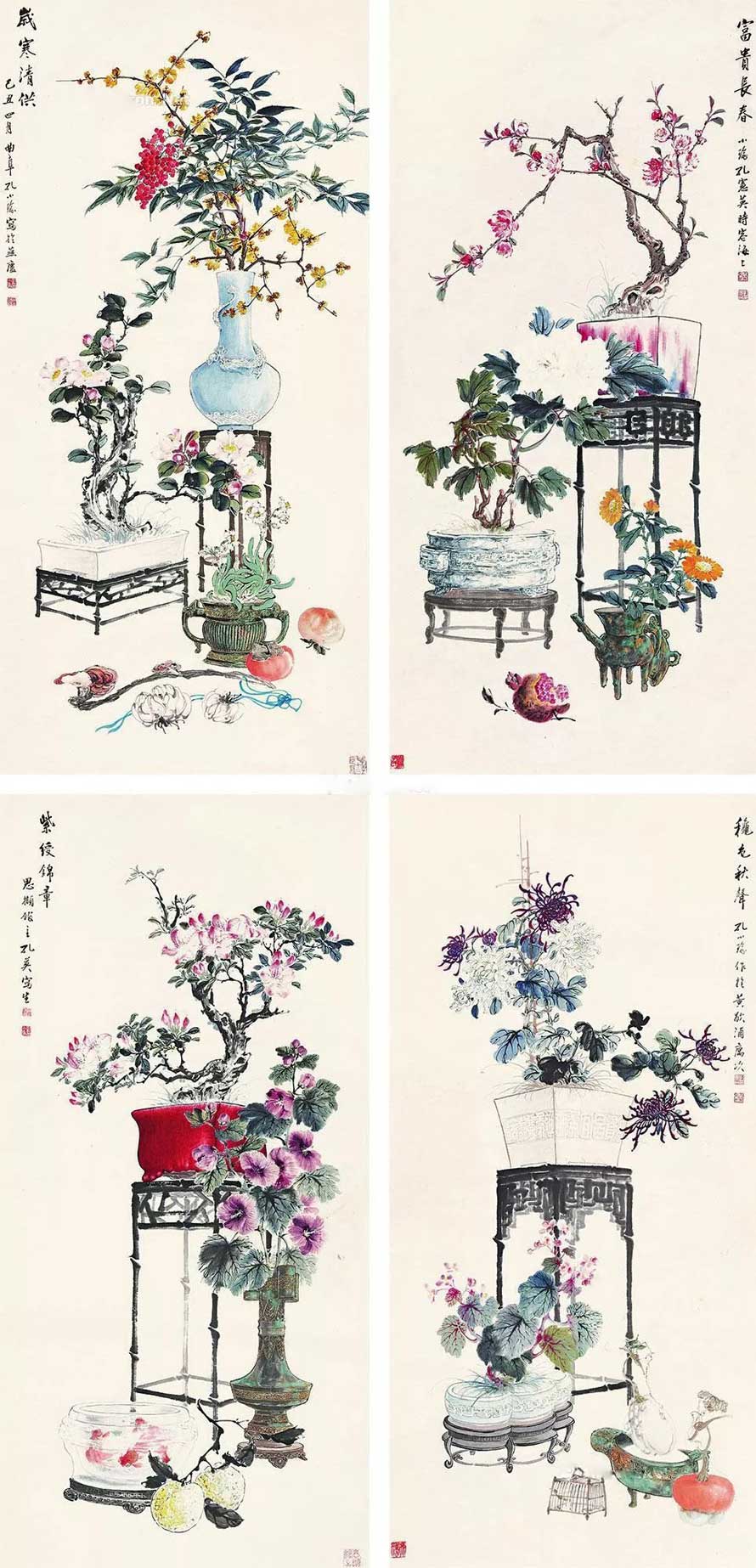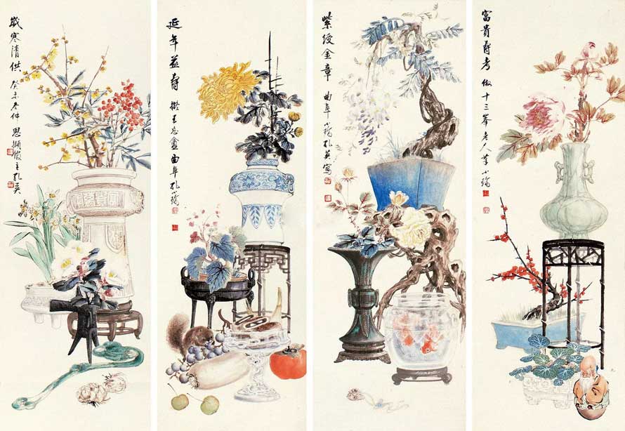 Top1. 博古 四屏立轴 138.00万 (目前为止孔小瑜拍卖最贵作品)
