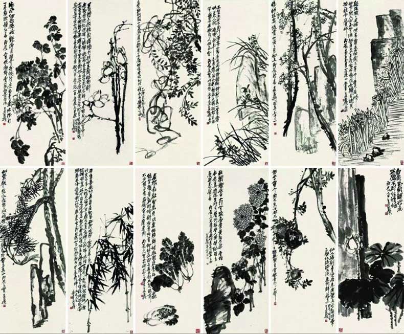 △吴昌硕《花卉十二条屏》
