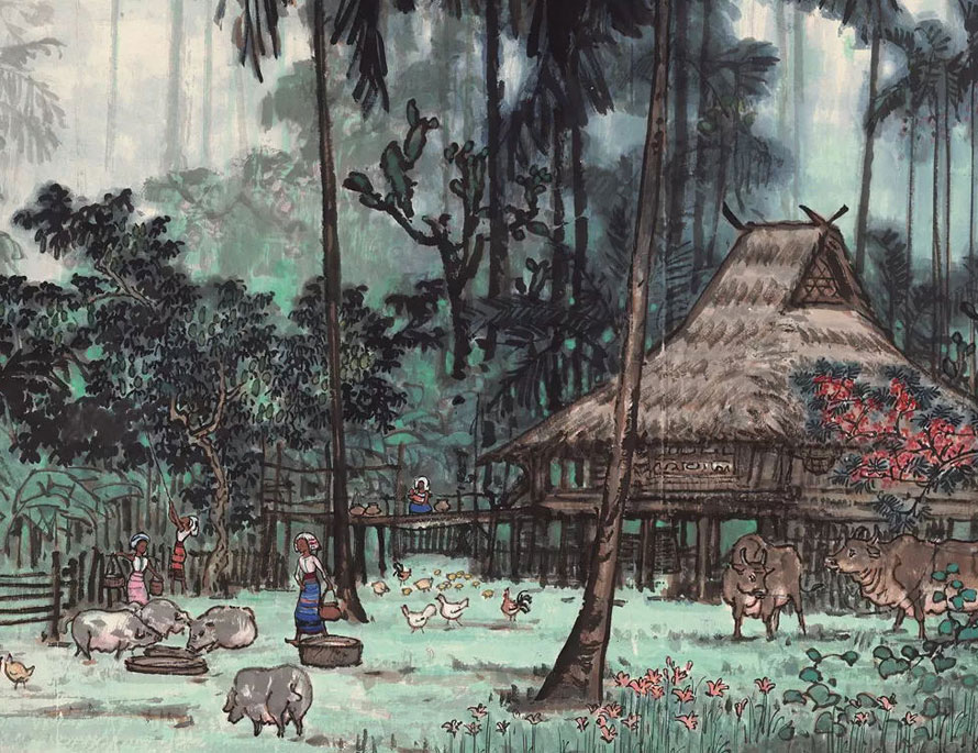 △宗其香作品《边寨清晨》局部