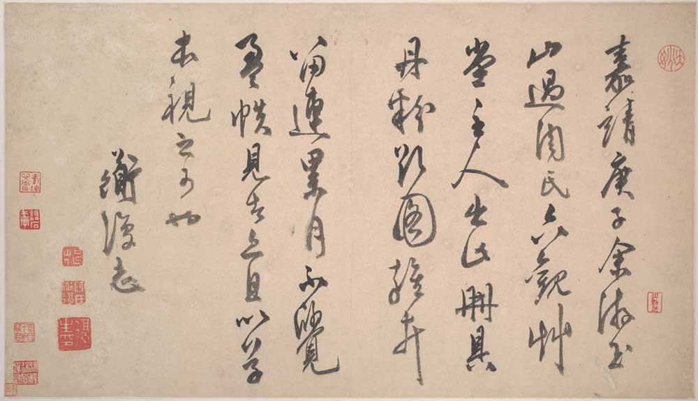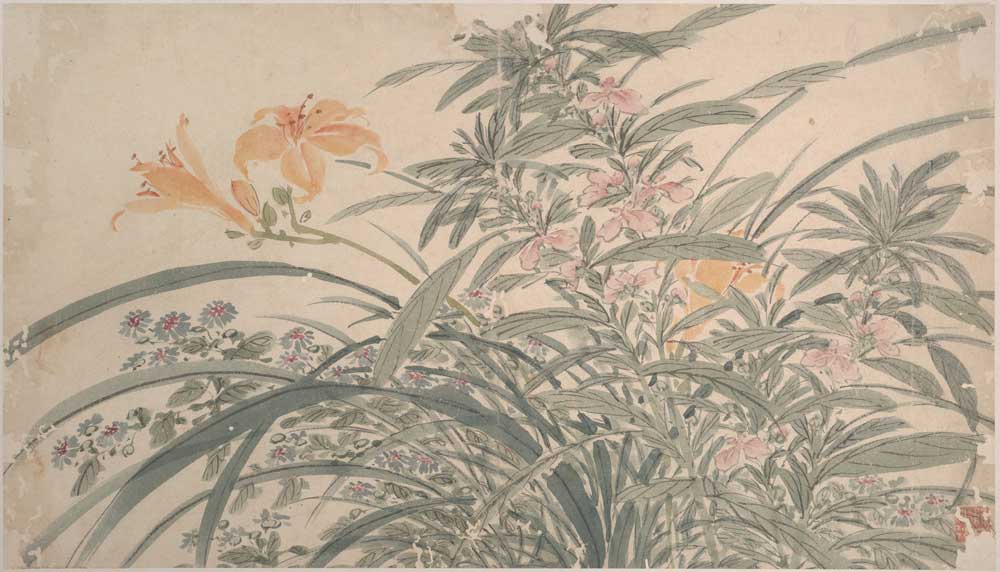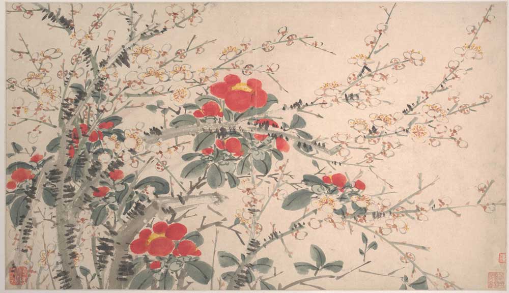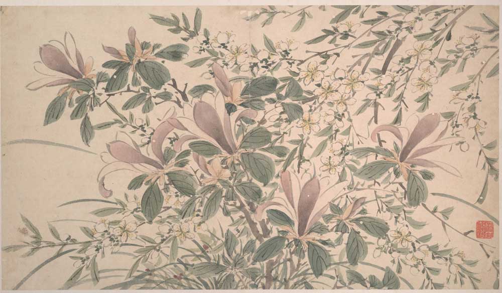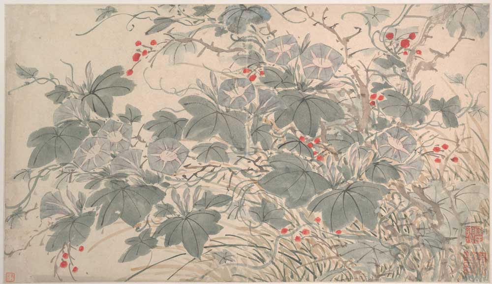 陈淳(明代1483年—1544年),初名淳,字道复,后以字行,更字复父,号白阳山人,吴(今苏州)人,文徵明弟子。尤擅画花鸟。中年以后,笔墨纵放,自立门户。本幅《花卉图》是明代画家陈淳的画作,此册作于明嘉靖二十三年,陈淳是年逝世,应是其最晚之杰作。