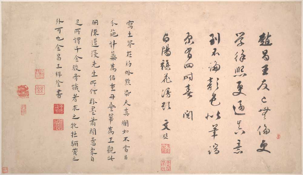 陈淳少年作画以元人为法,深受水墨写意的影响。他的写生画,一花半叶,淡墨欹毫,自有疏斜历乱之致。他的有些作品,所画质朴,可以看出受沈周画法的影响, 从他现存作品中即可见风格和用笔,既能放得开,又能收得。
