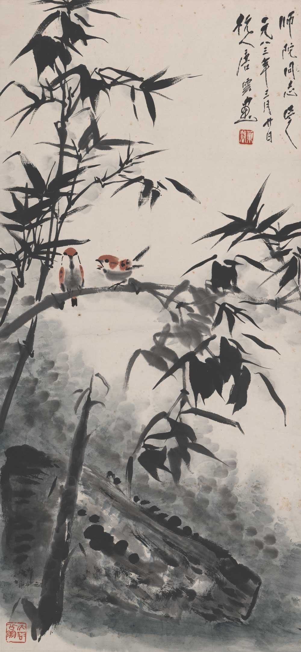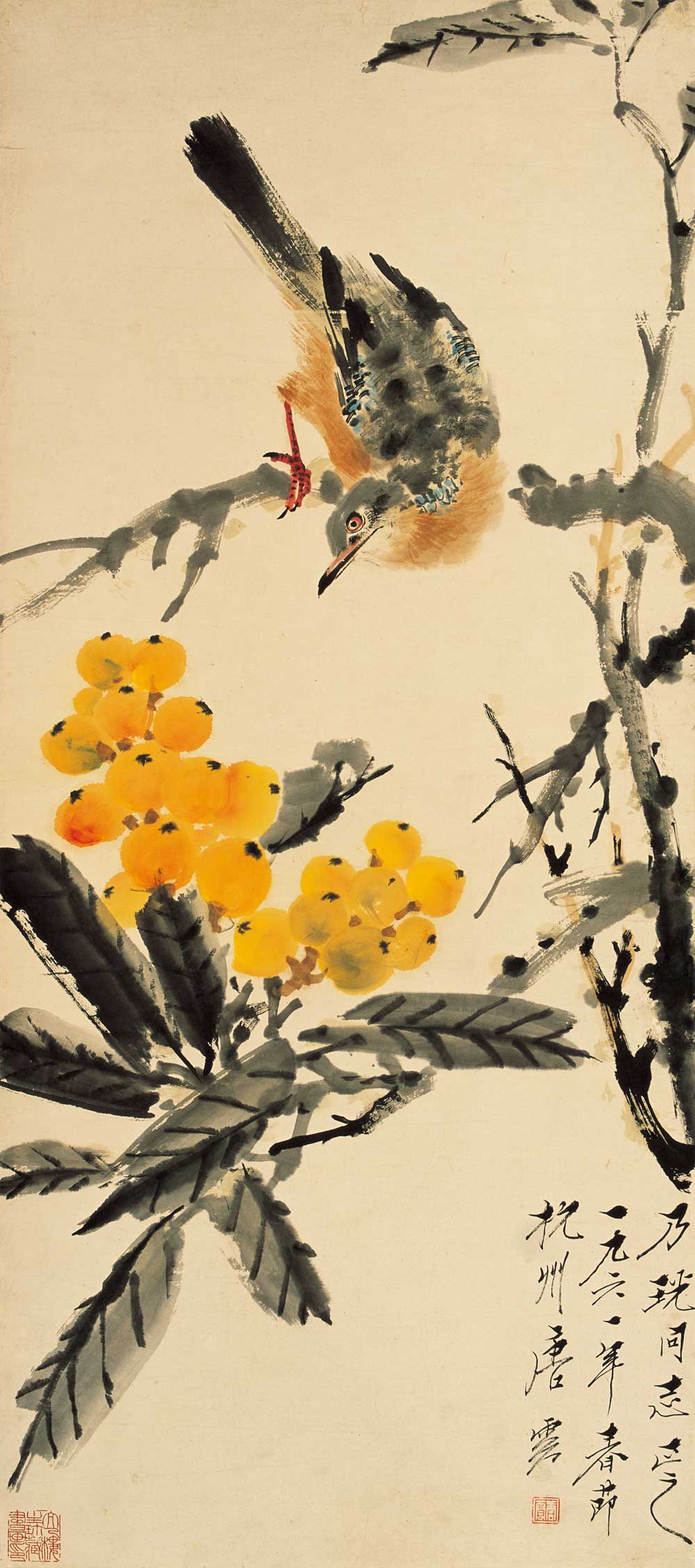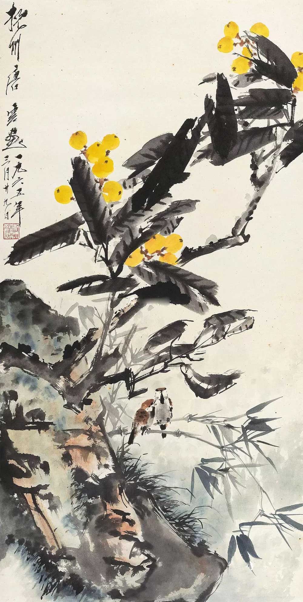 △ 1965年作 枇杷麻雀 136.5×68cm