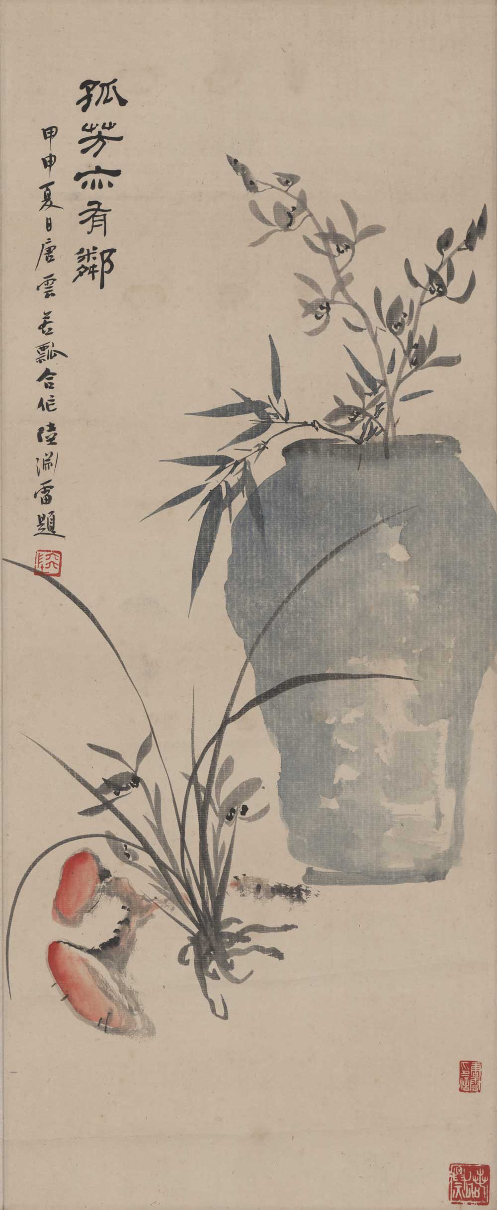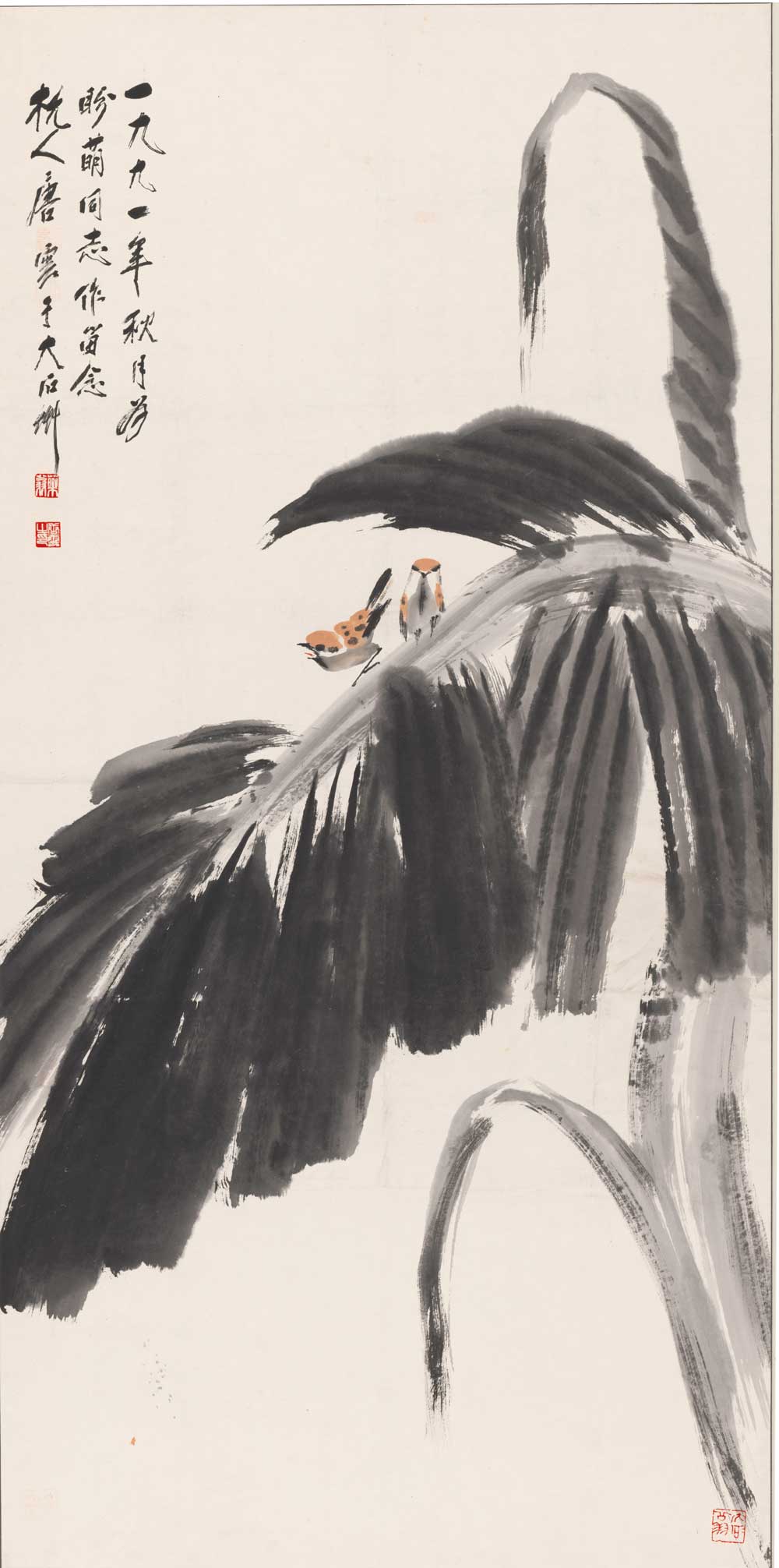 唐云(1910 1993),字侠尘,别号药城、药尘、药翁、老药、大石、大石翁,画室名“大石斋”、“山雷轩”。生前曾担任中国美术家协会理事,中国美术家协会上海分会副主席,中国画研究院院务委员,上海中国画院副院长、代院长、名誉院长等职。其性格豪爽,志趣高远,艺术造诣颇高,擅长花鸟、山水、人物,可谓诗书画皆至妙境。