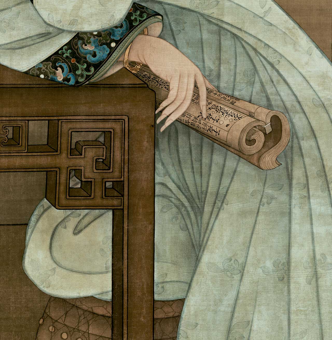 △冷枚 春阁倦读轴局部 3