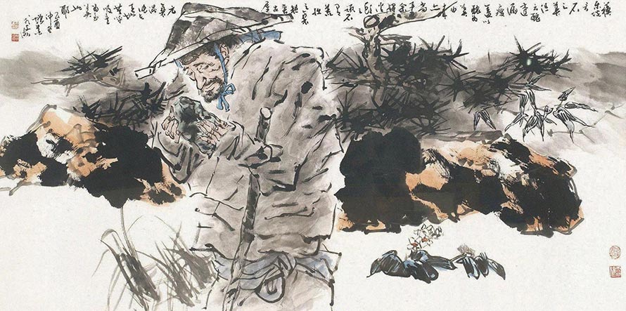 方增先(b.1931),浙江兰溪人。1953年毕业于浙江美术学院,继入研究生班学习。1955年任教于浙江美术学院中国画系。1984年任上海中国画院副院长。曾任浙江省美协副主席、浙江美术学院教授。现为中国美协理事、中国画艺术委员会副主任、上海中国画院一级美术师、上海美术馆馆长。“浙派人物画”的奠基人和推动者。