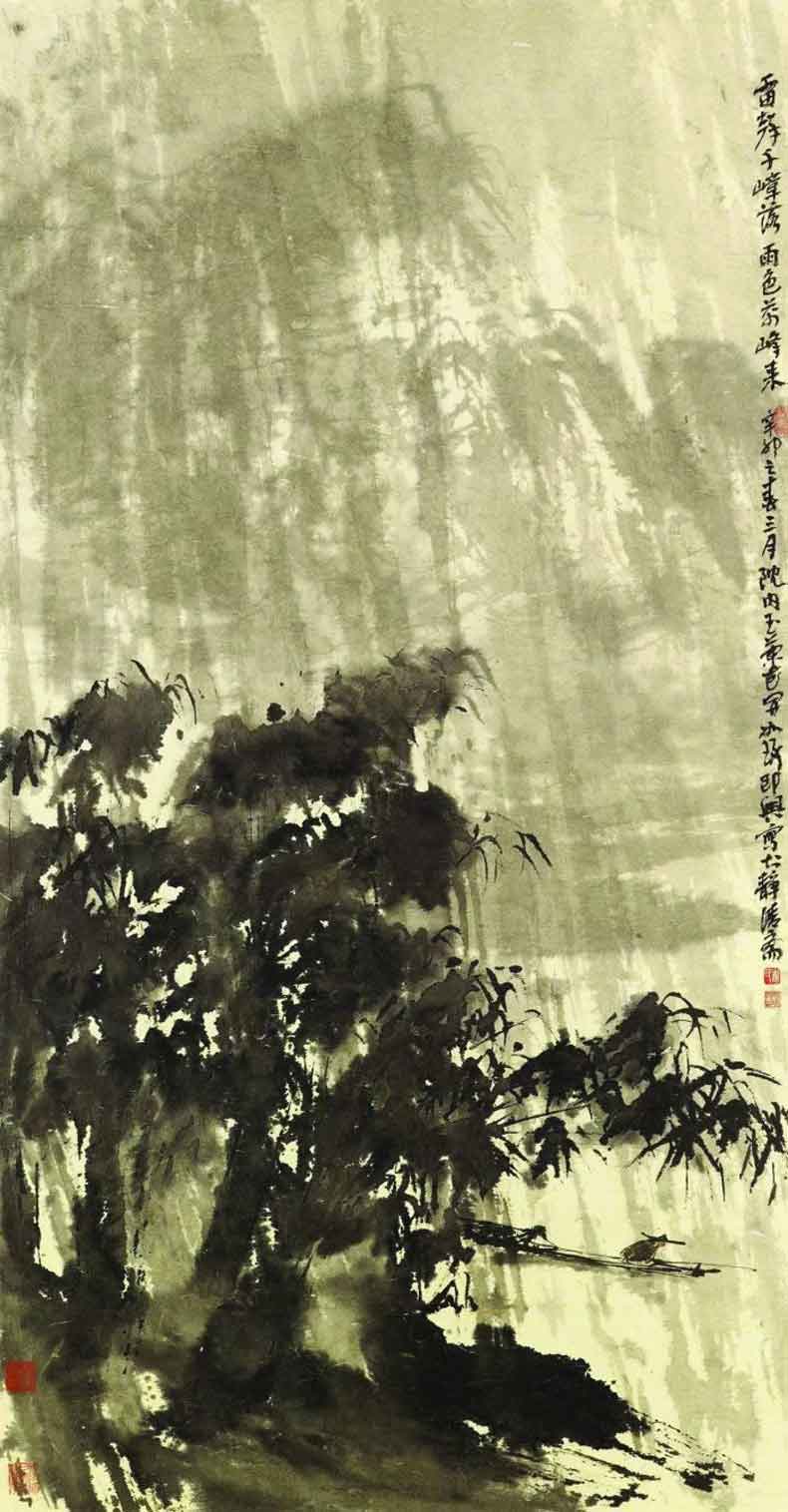 图2 李可染《雨中泛舟》