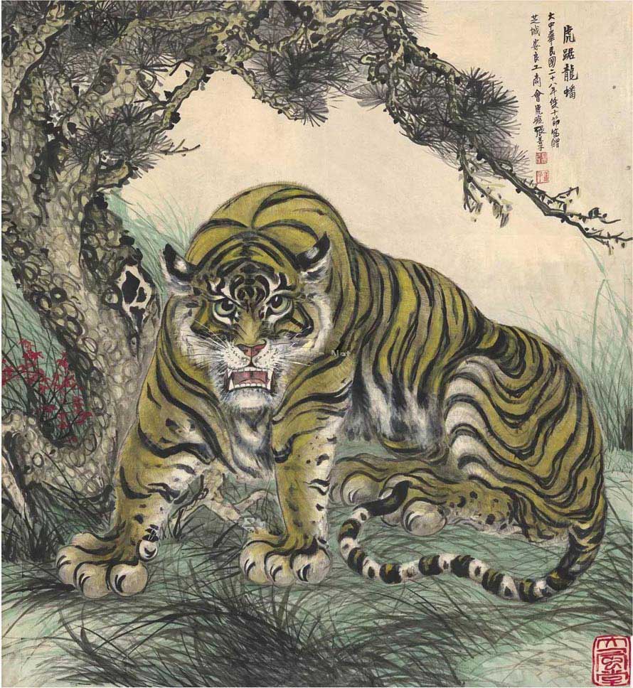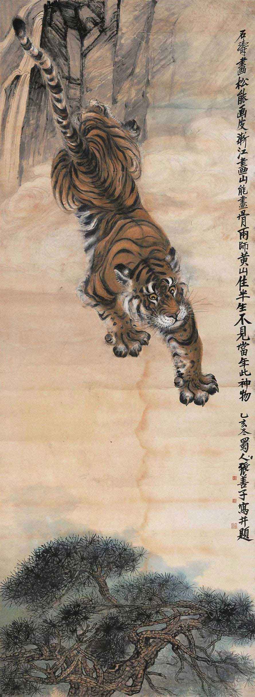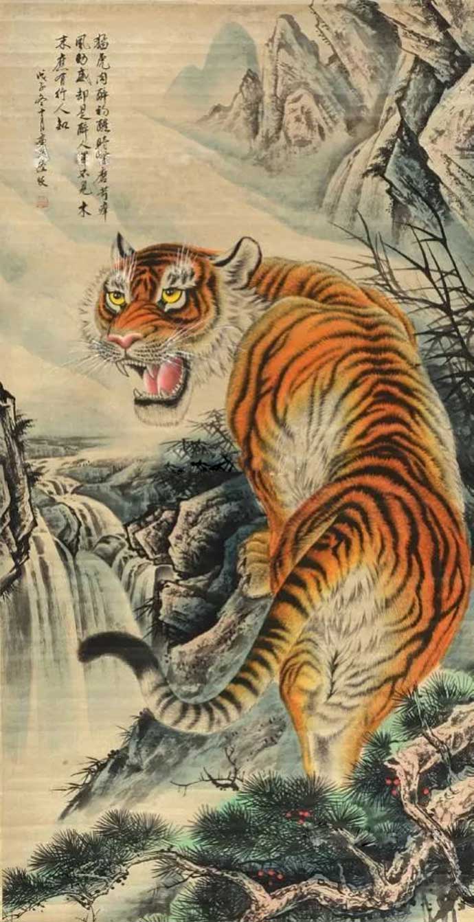 张善孖(1882~1940) ,四川内江人,现代名画家,张大千的二哥,画虎大师。少年从母学画,曾拜李瑞清门下,喜爱武术,跟其弟张大千一师从心意拳大师宝鼎习心意拳及内功十三段。张善孖,号“虎痴”,以画虎名噪一时。对画虎特别痴迷,爱虎画虎,情有独钟。其性格刚烈、嫉恶如仇,曾是民初***的功臣,后来辞官归隐,专心致志地从事绘画。