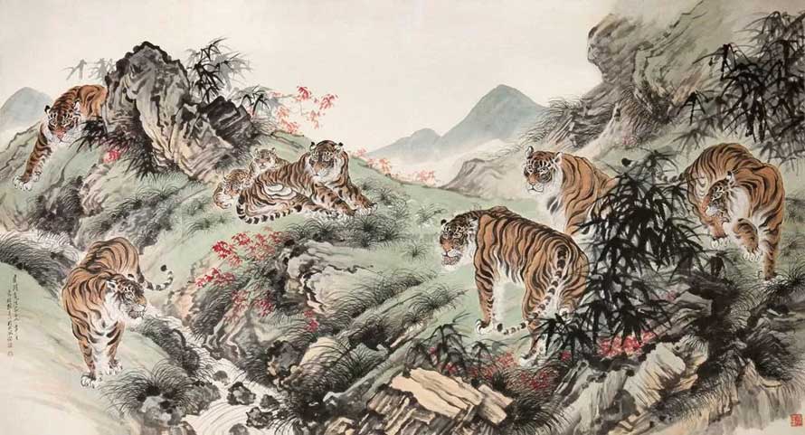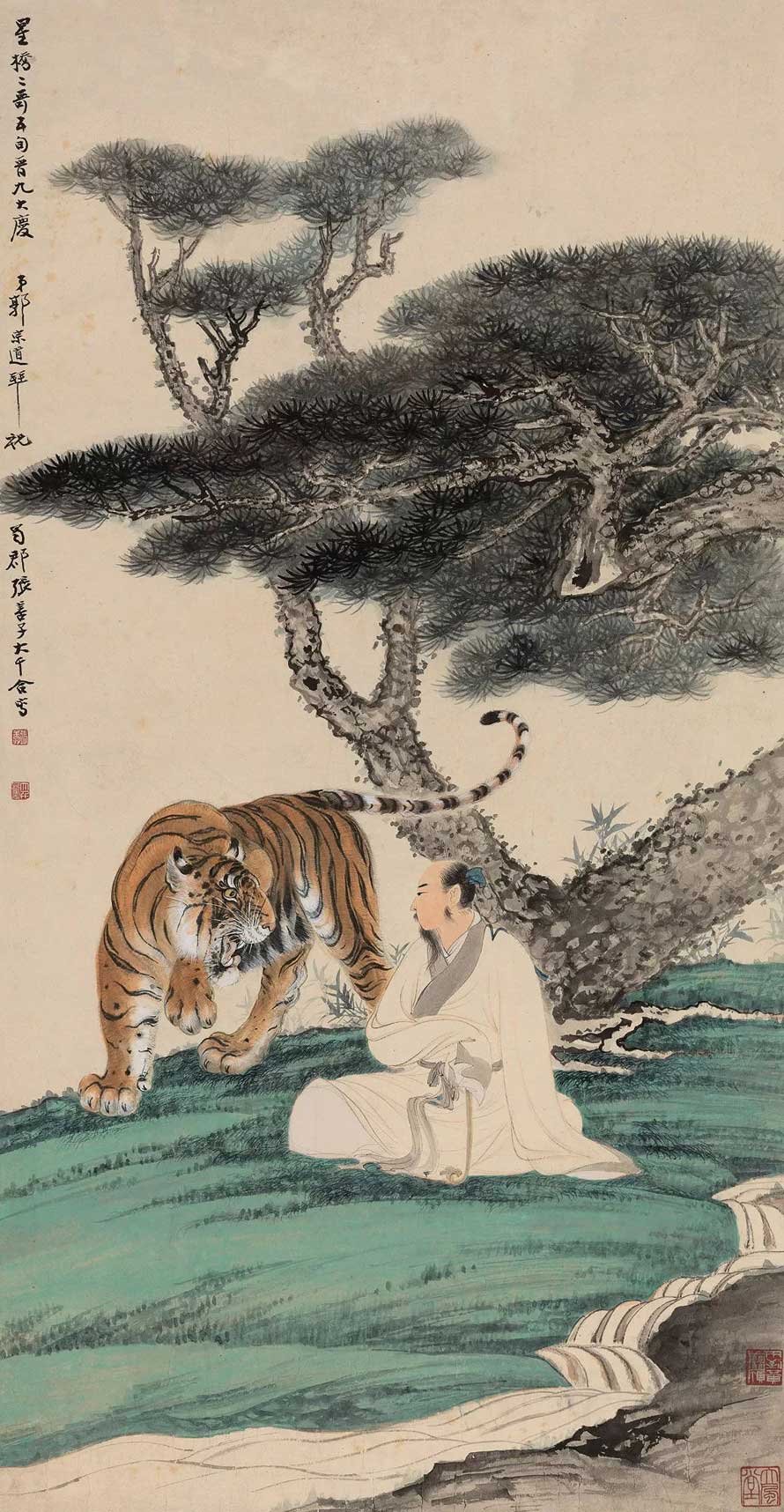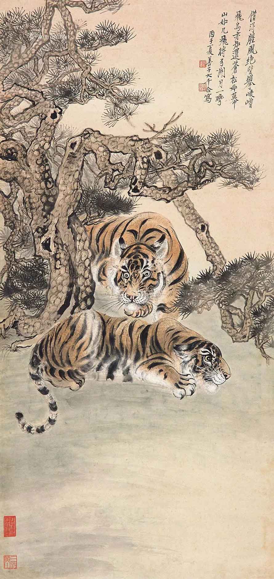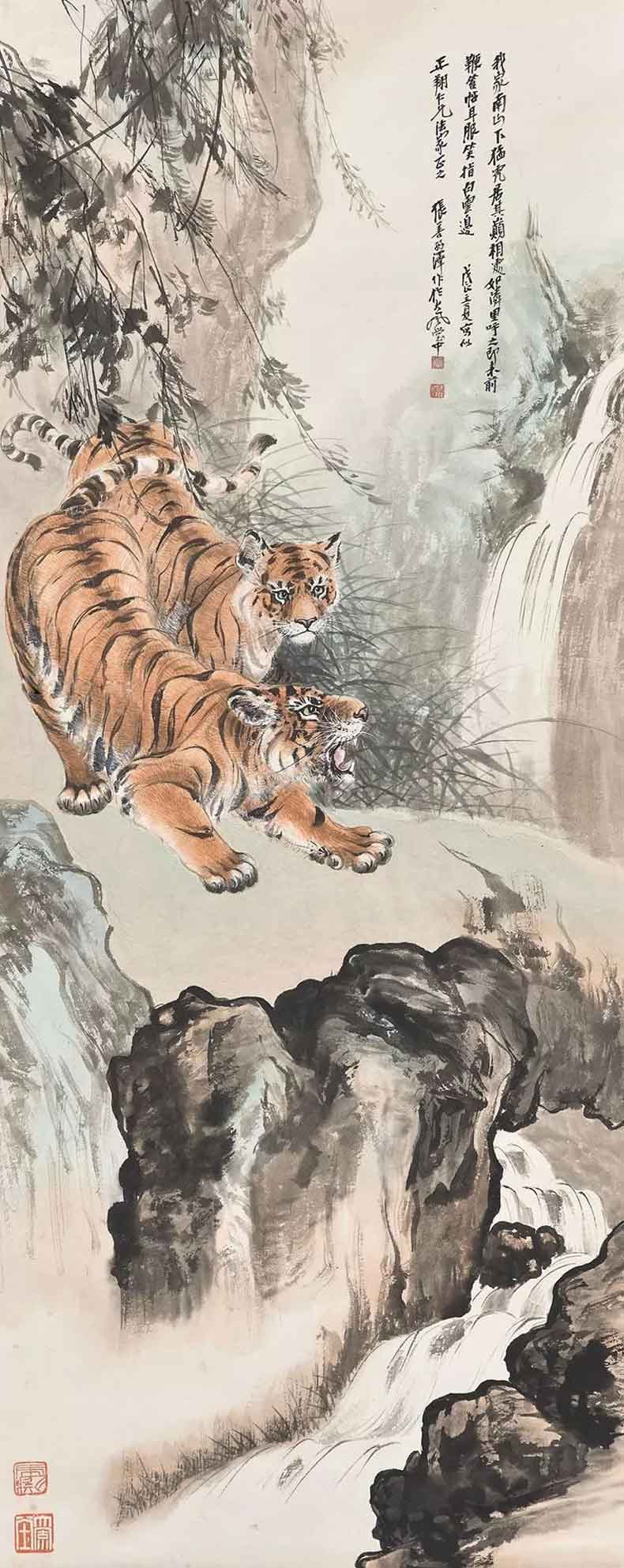 张善孖(1882~1940) ,四川内江人,现代名画家,张大千的二哥,画虎大师。少年从母学画,曾拜李瑞清门下,喜爱武术,跟其弟张大千一师从心意拳大师宝鼎习心意拳及内功十三段。张善孖,号“虎痴”,以画虎名噪一时。对画虎特别痴迷,爱虎画虎,情有独钟。其性格刚烈、嫉恶如仇,曾是民初***的功臣,后来辞官归隐,专心致志地从事绘画。